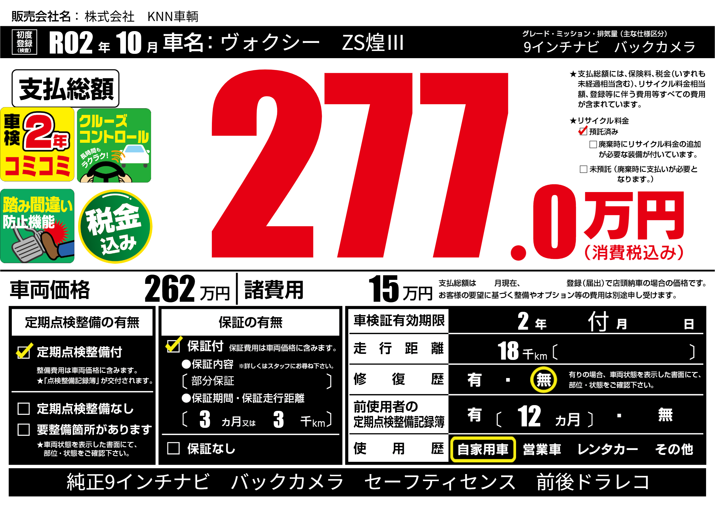 なし | 車検制限 | 2年付月---月 |
