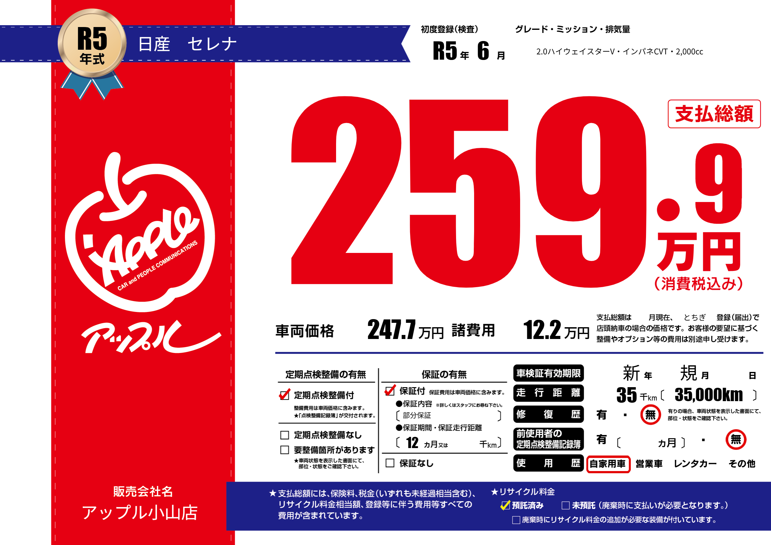 | 走行キロ | 3.5万km | 初年度登録 | R5年6月 |