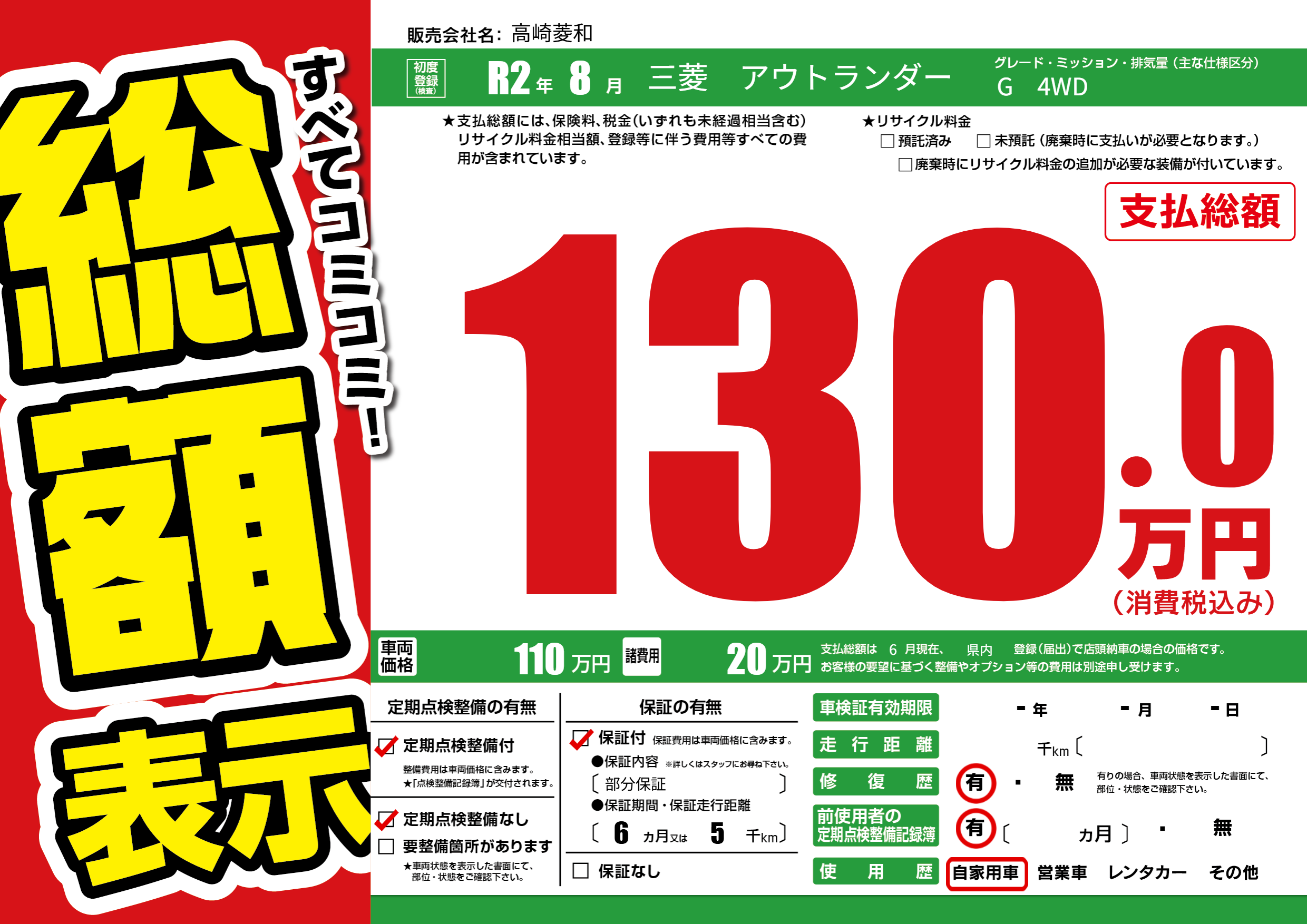 | 車検制限 | -年 -月 -日 | ||