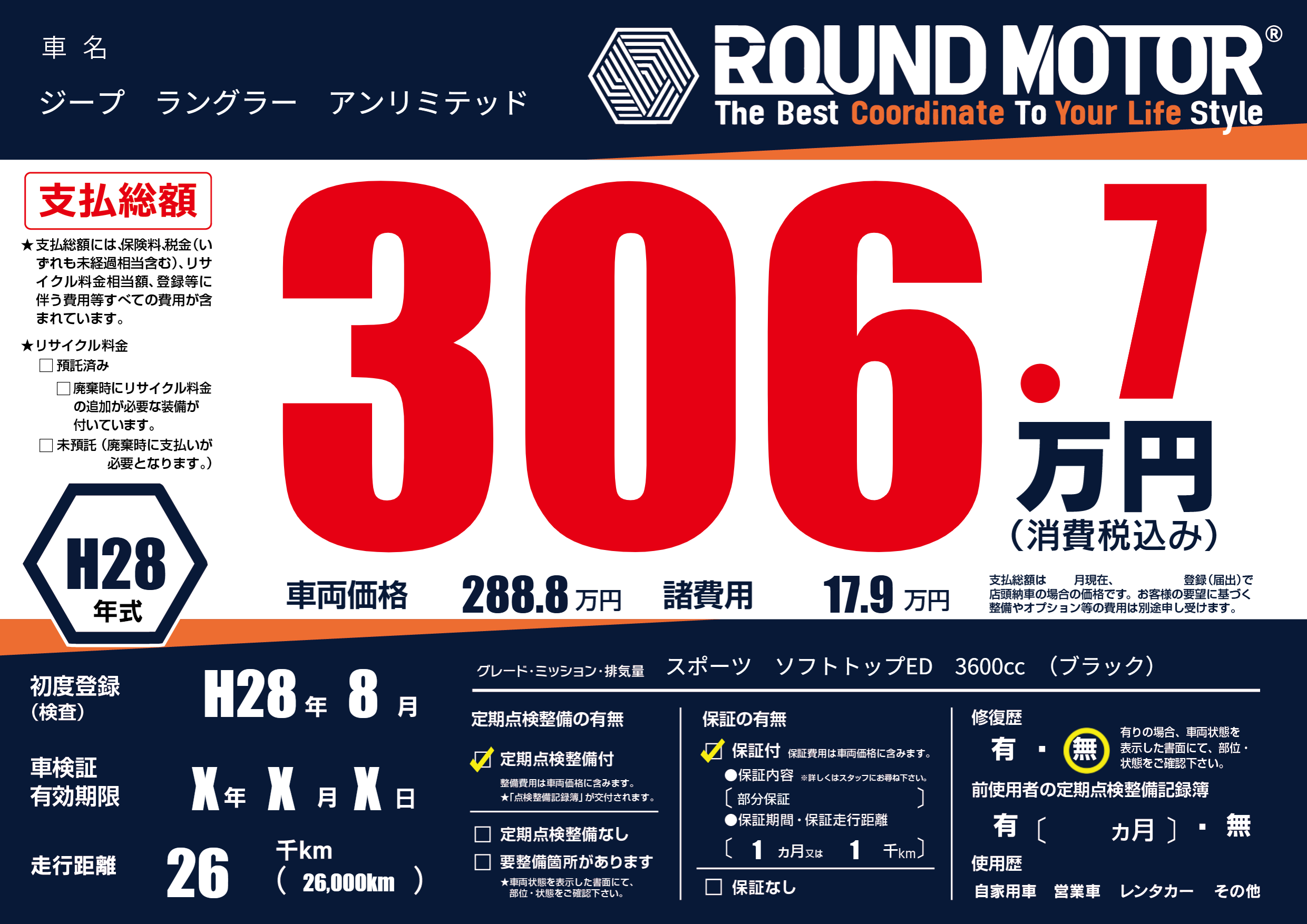| 車検制限 | X年 X月 X日 | ||