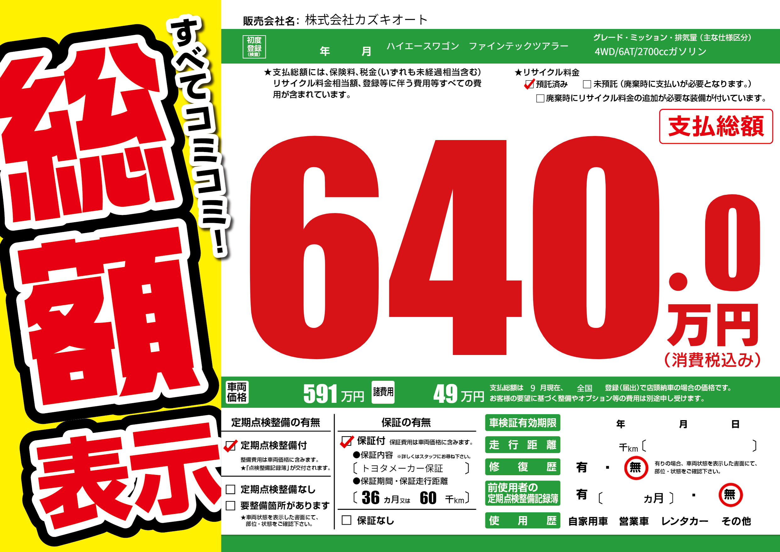 | 車名 | ハイエースワゴン ファインテックツアラー | グレード ミッション 排気量 |