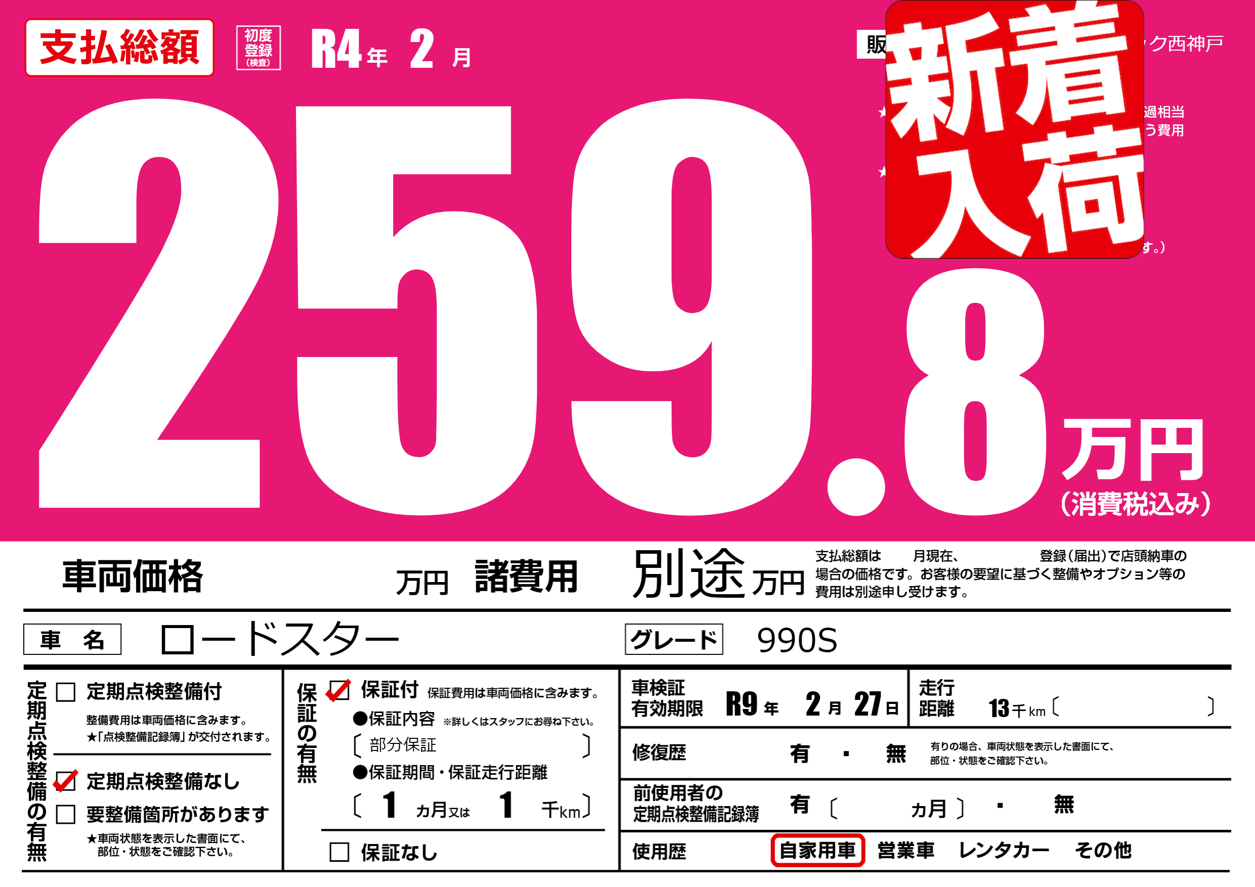 | 車名 | ロードスター | グレード ミッション 排気量 |