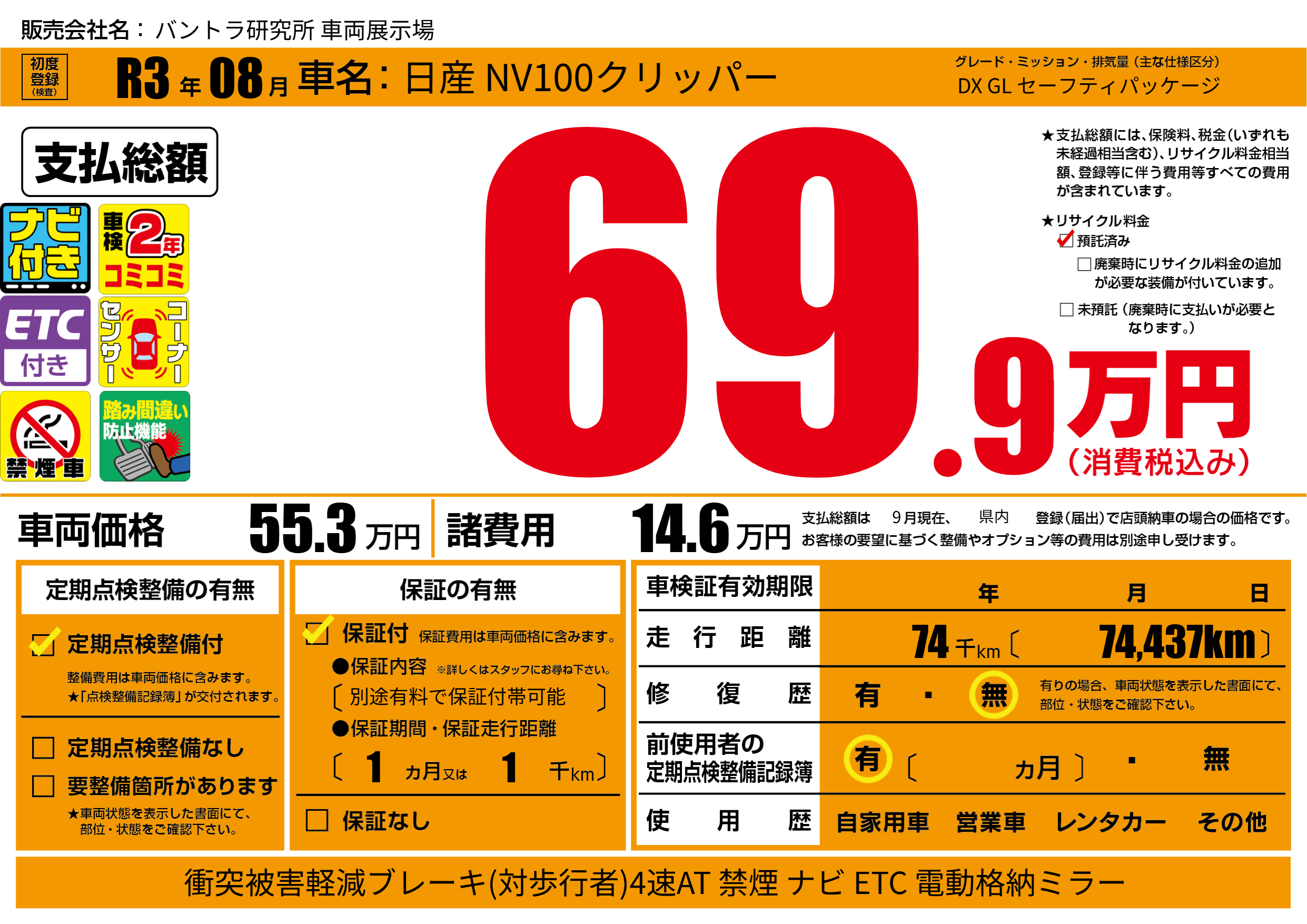 | 車名 | 日産 NV100クリッパー | グレード ミッション 排気量 |