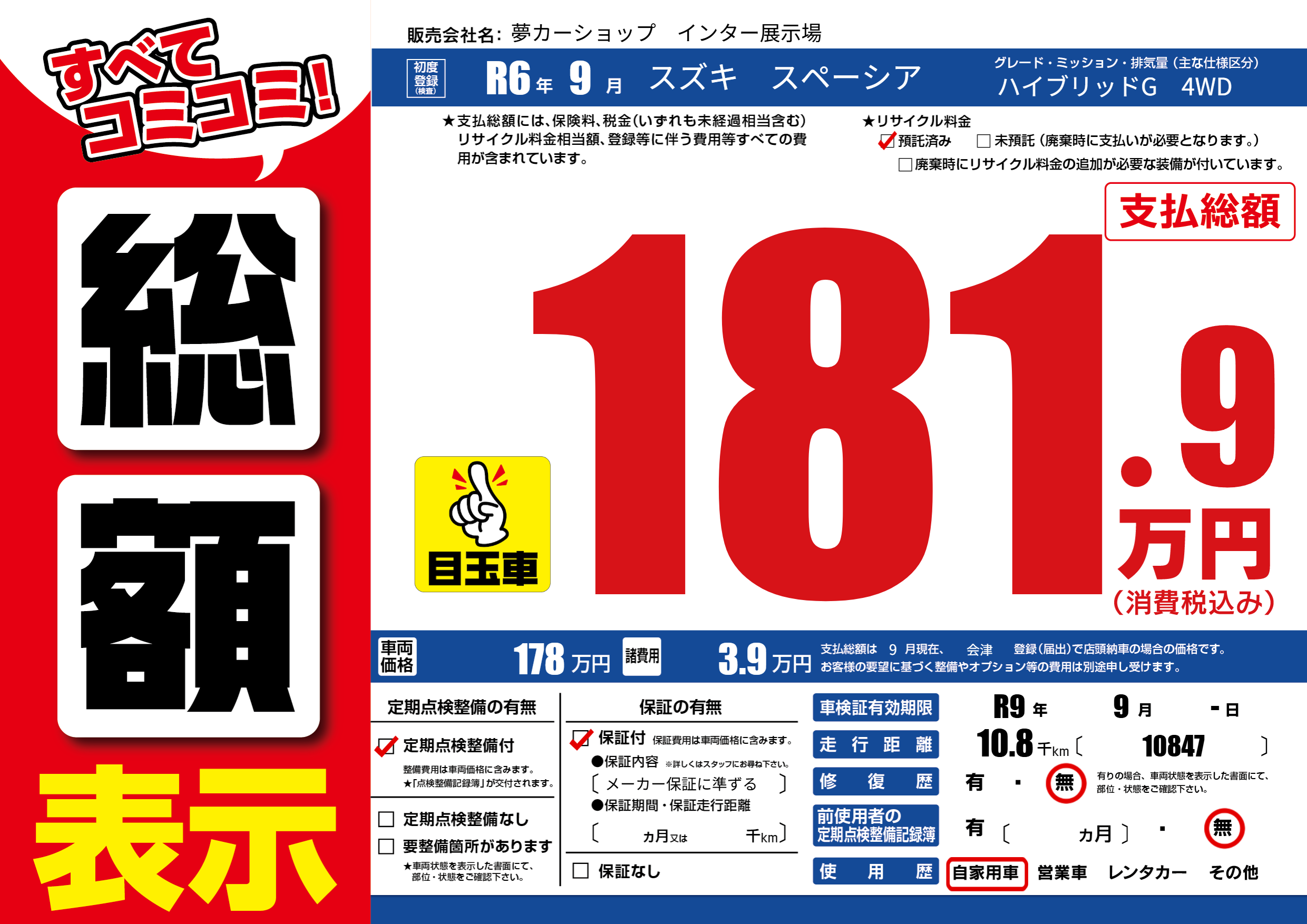 | 車検制限 | R9年 9月 -日 | ||