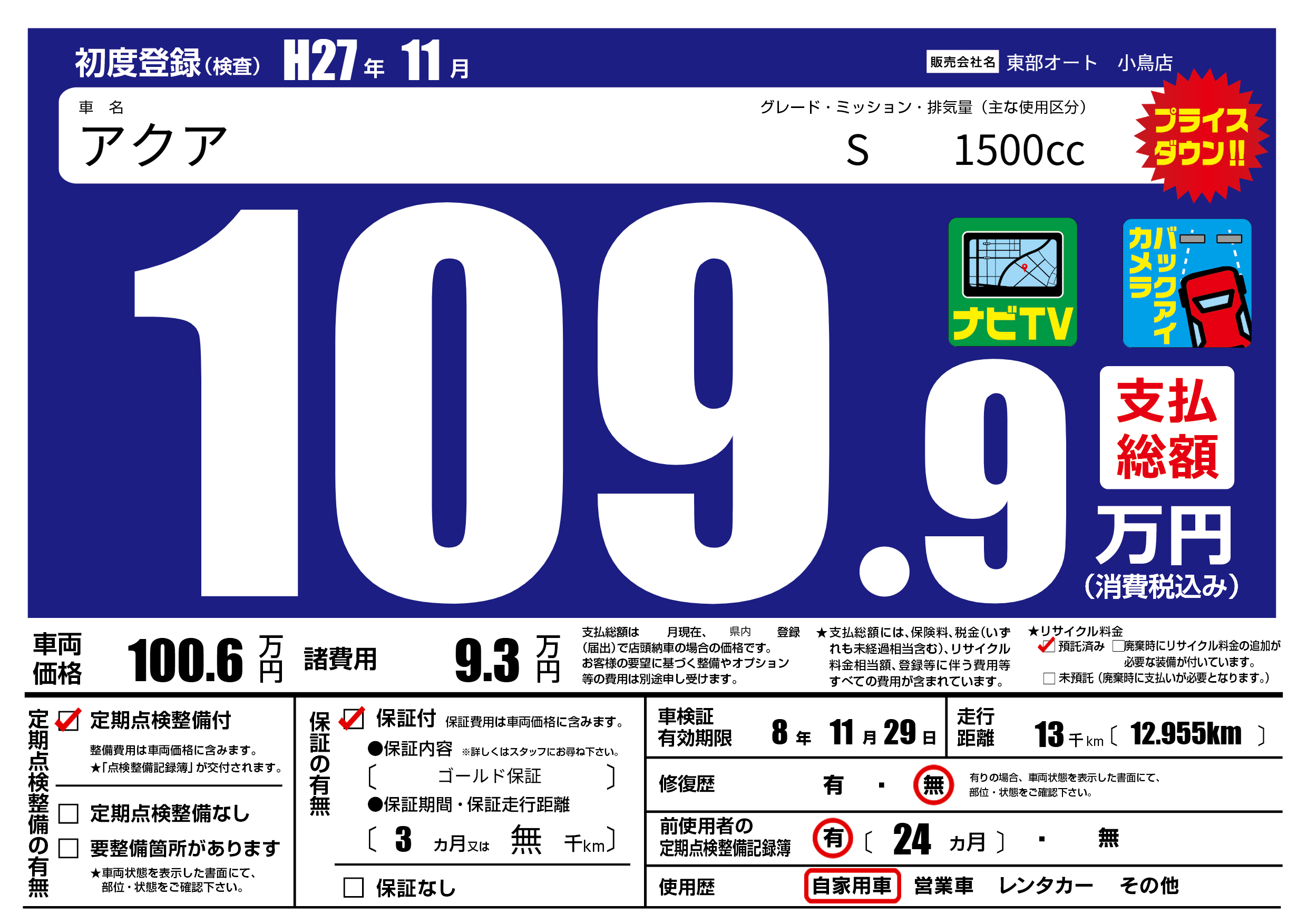 | 定期点検整備 | 定期点検整備あり | ||