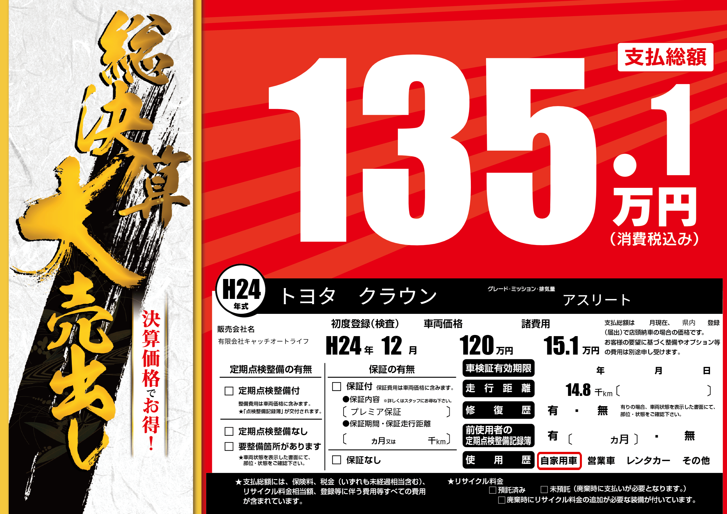 | 車名 | トヨタ クラウン | グレード ミッション 排気量 |