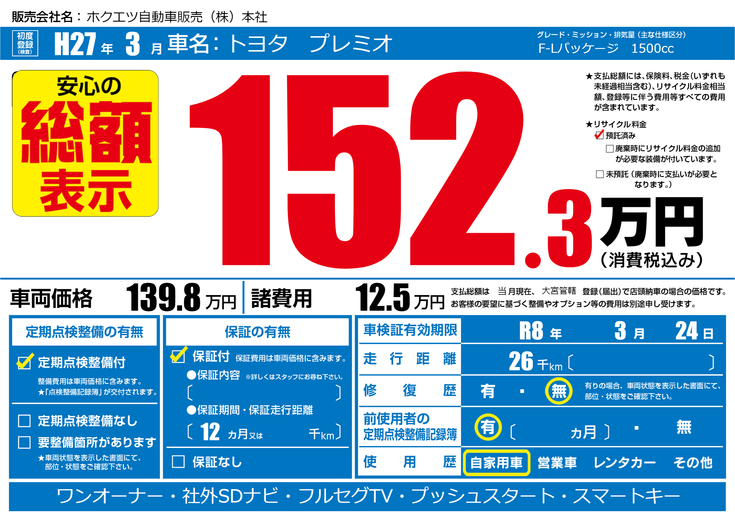 | 初年度登録 | H27年3月 | ||
