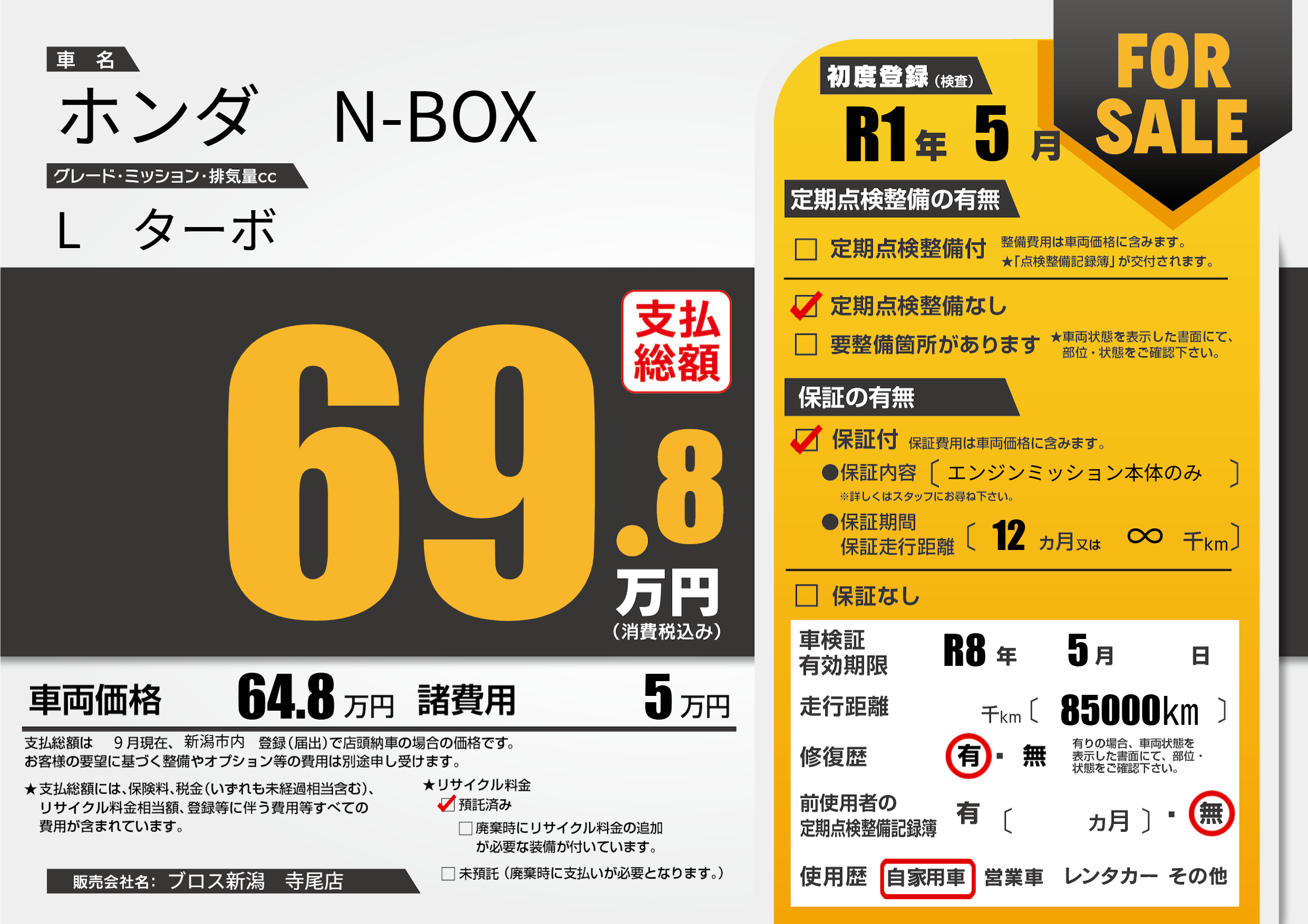 なし | 車検制限 | R8年5月---月 |