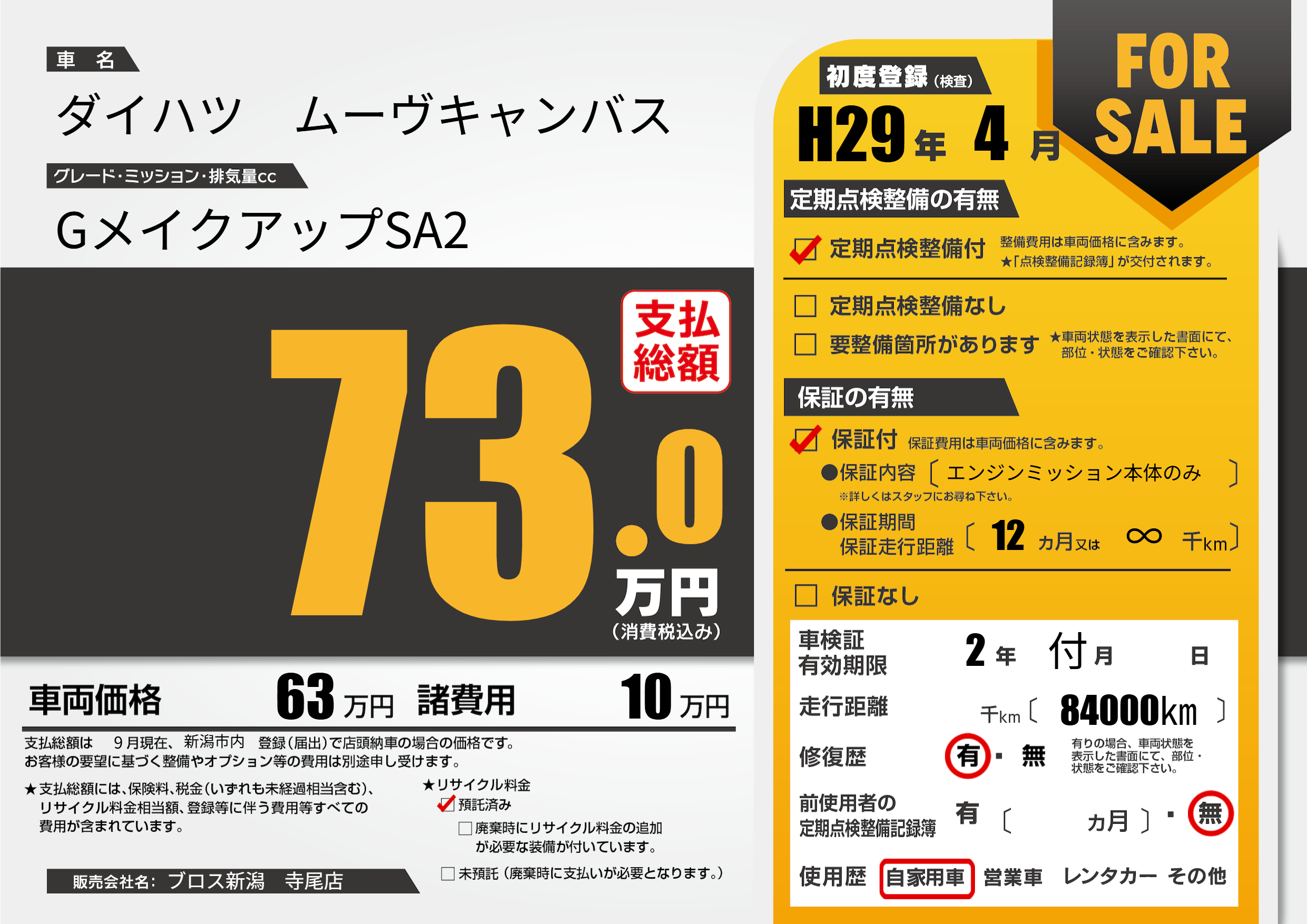 | 走行キロ | - | 初年度登録 | H29年4月 |