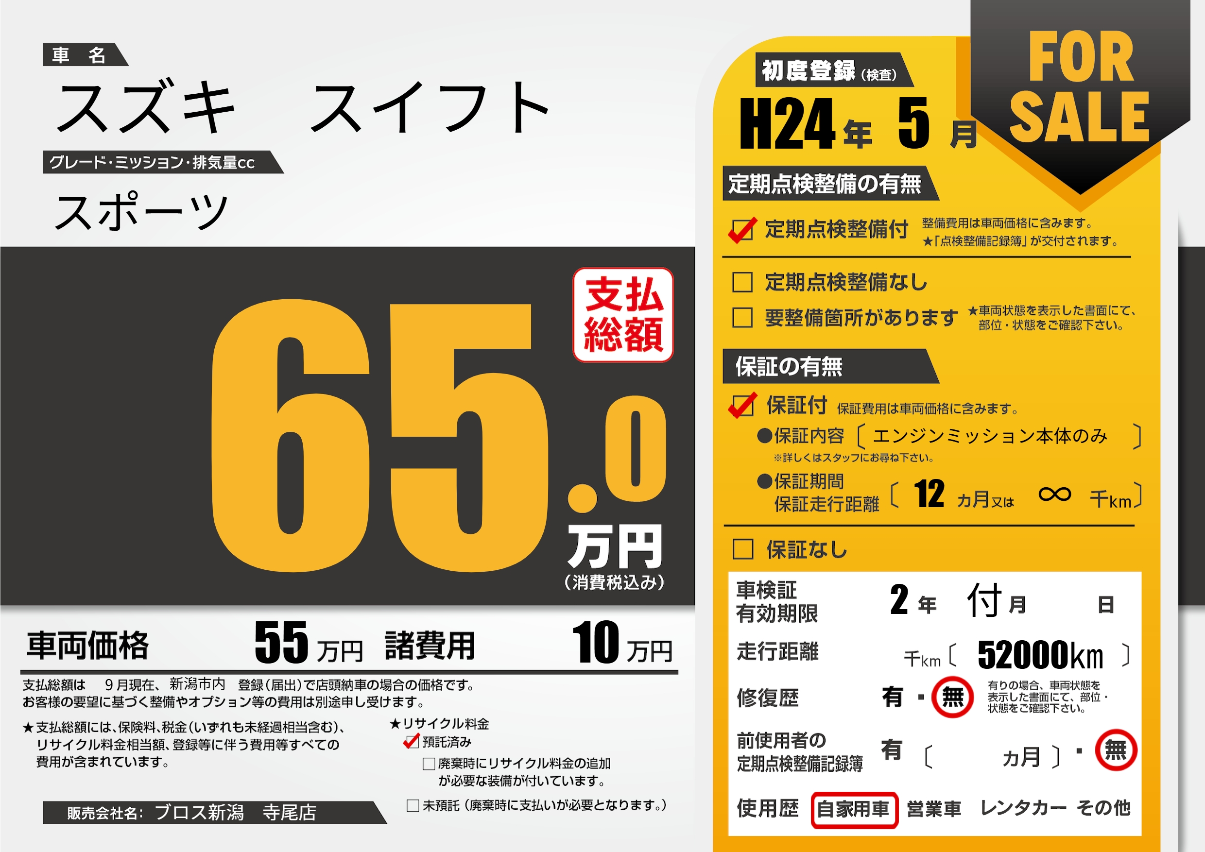 | 車名 | スズキ スイフト | グレード ミッション 排気量 |