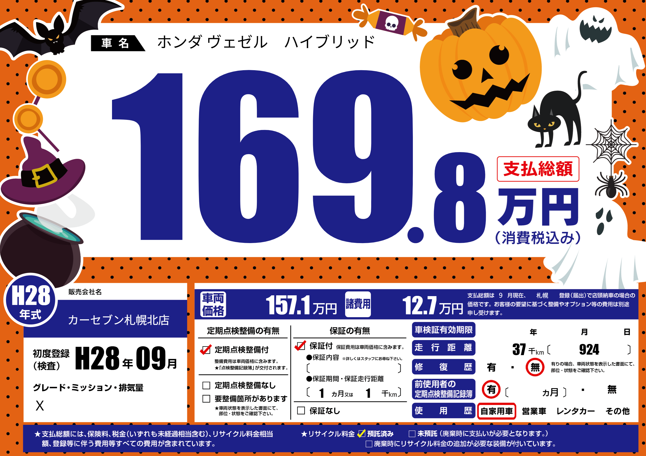 | 走行キロ | 3.7万km | 初年度登録 | H28年09月 |