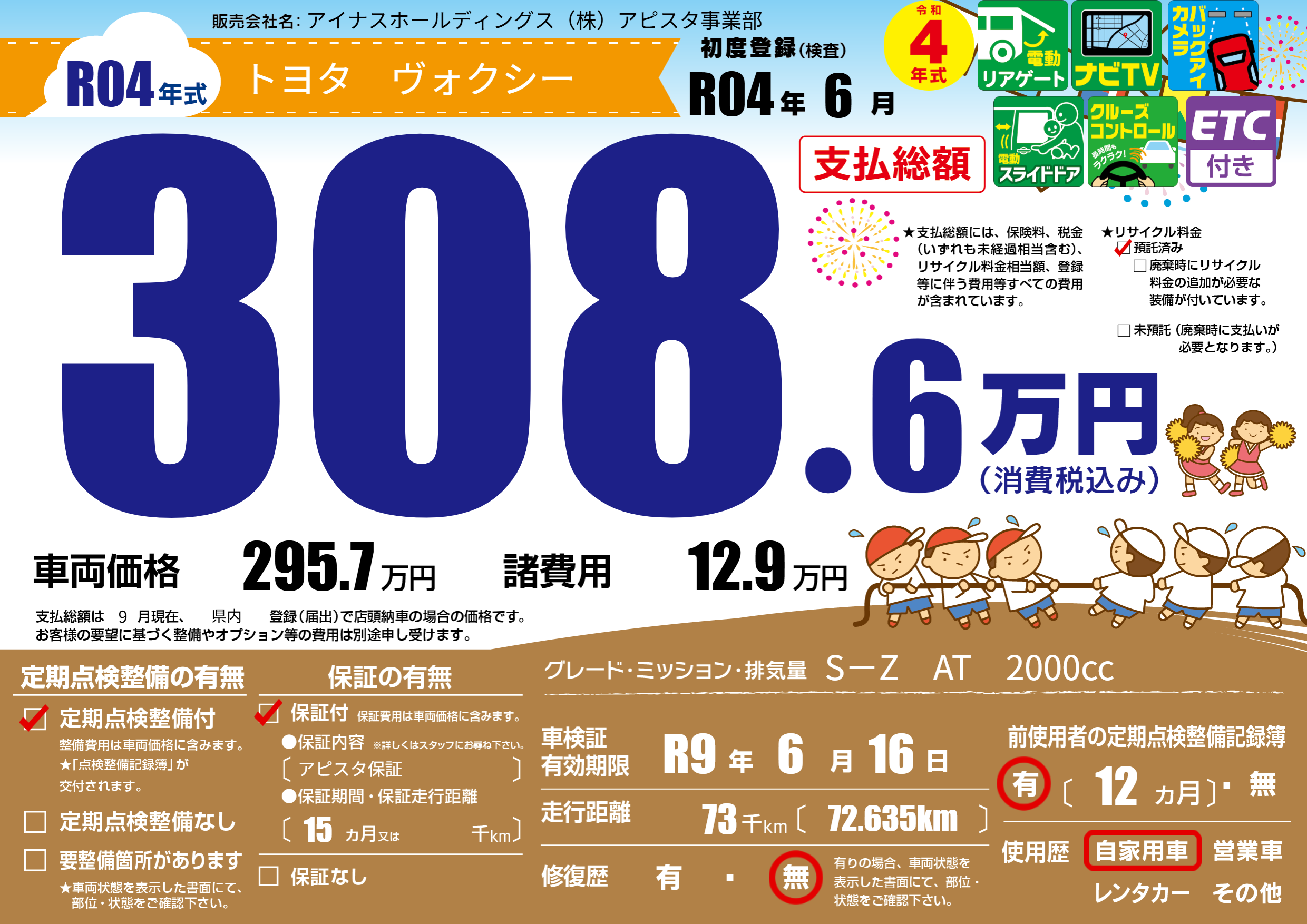 | 車名 | トヨタ ヴォクシー | グレード ミッション 排気量 |