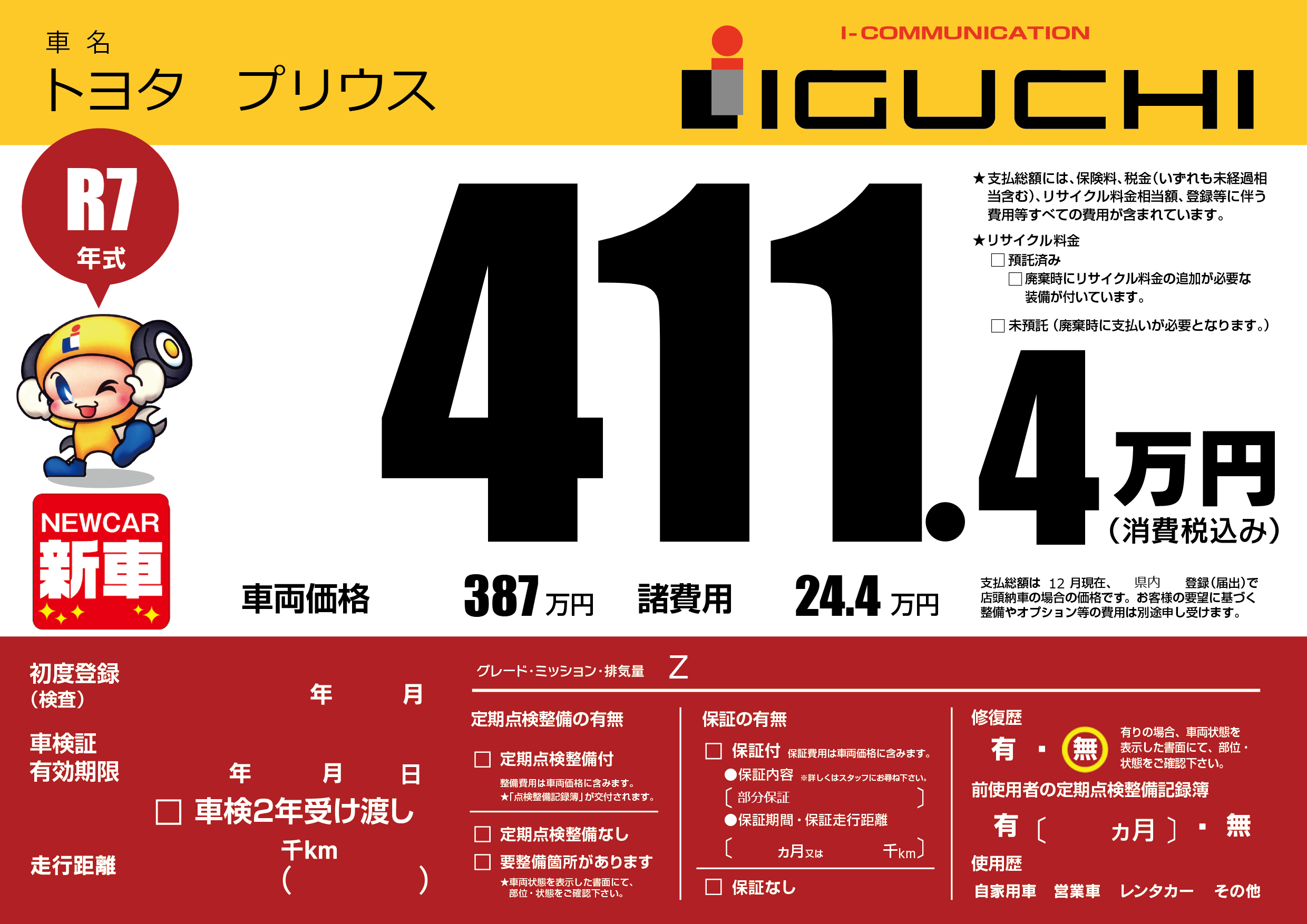 | 車名 | トヨタ プリウス | グレード ミッション 排気量 |