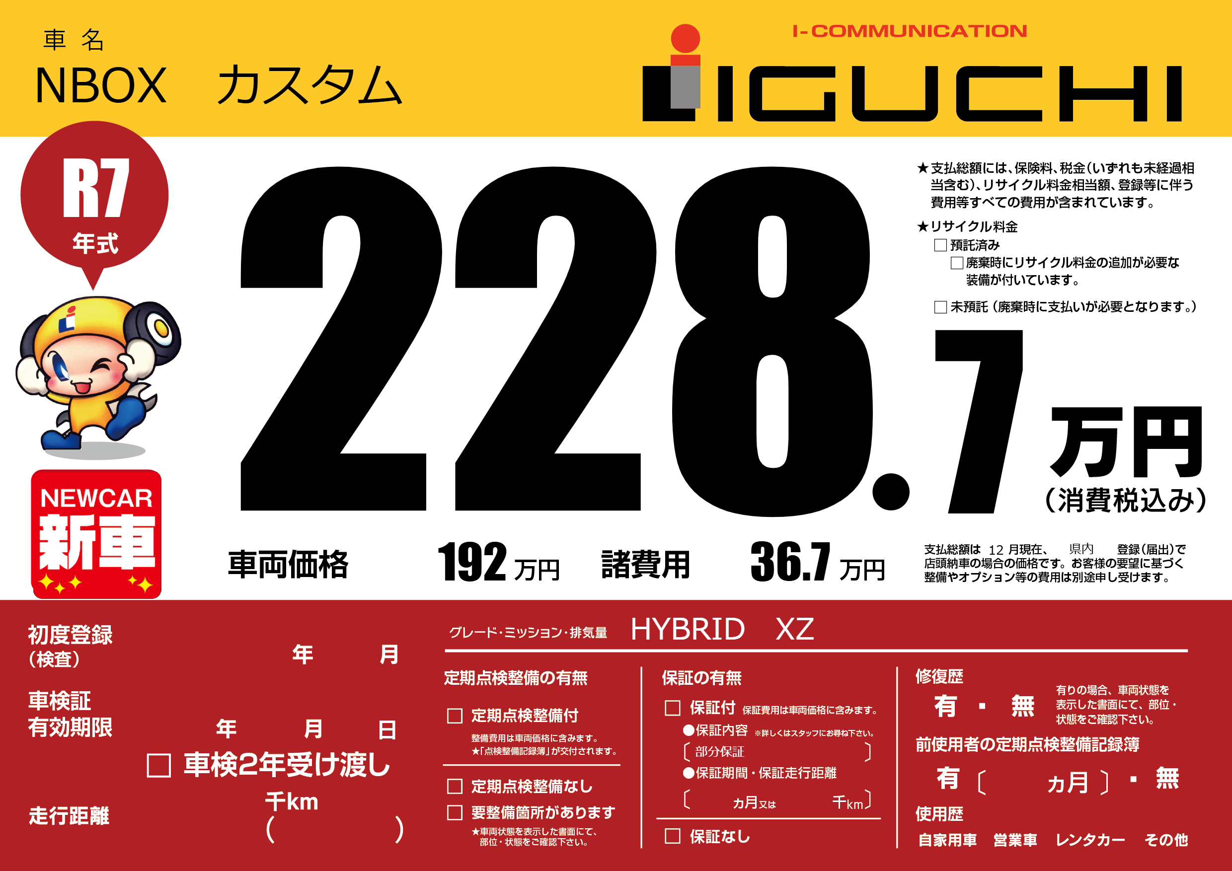 | 車名 | NBOX カスタム | グレード ミッション 排気量 |