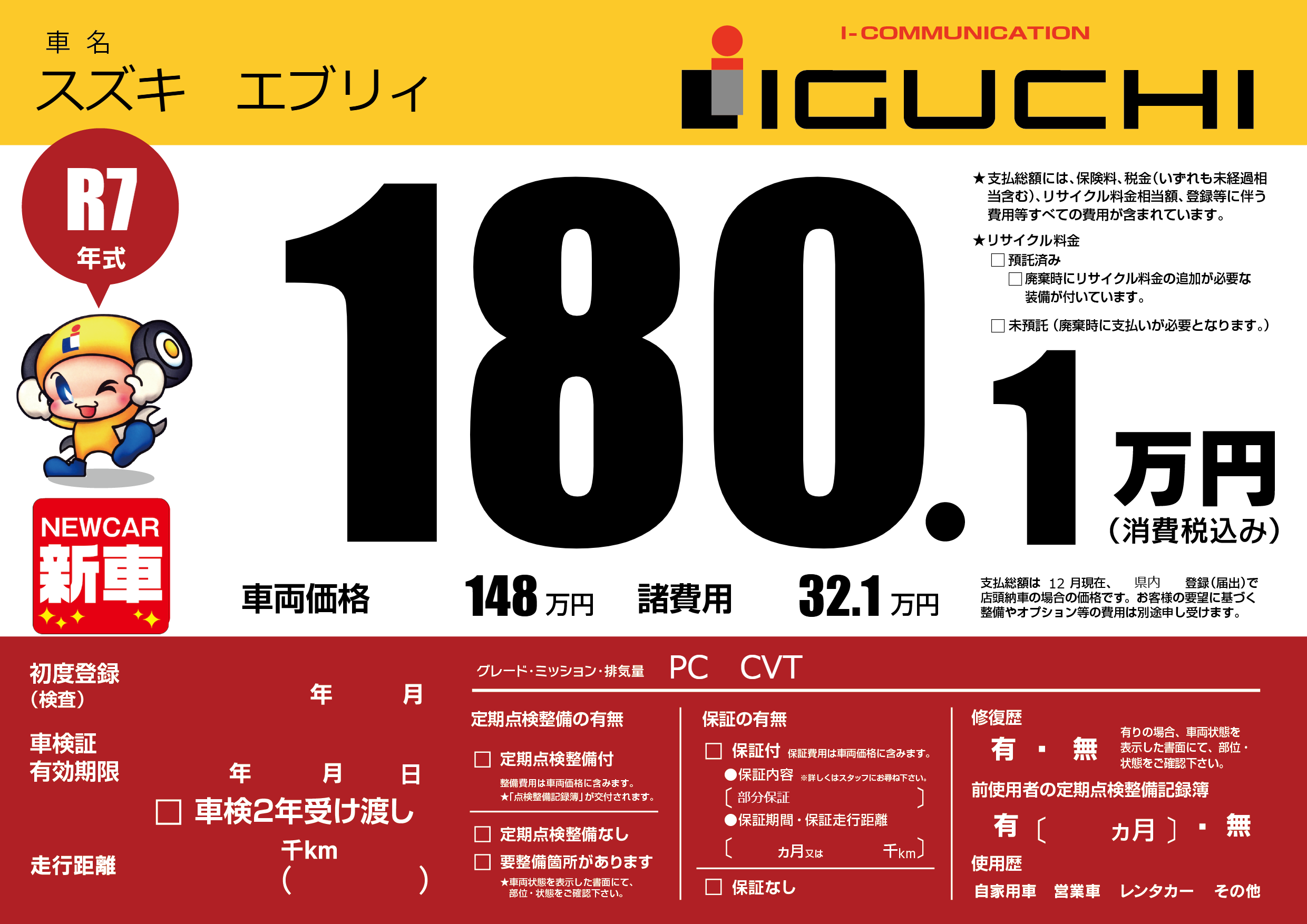 | 車名 | スズキ エブリィ | グレード ミッション 排気量 |
