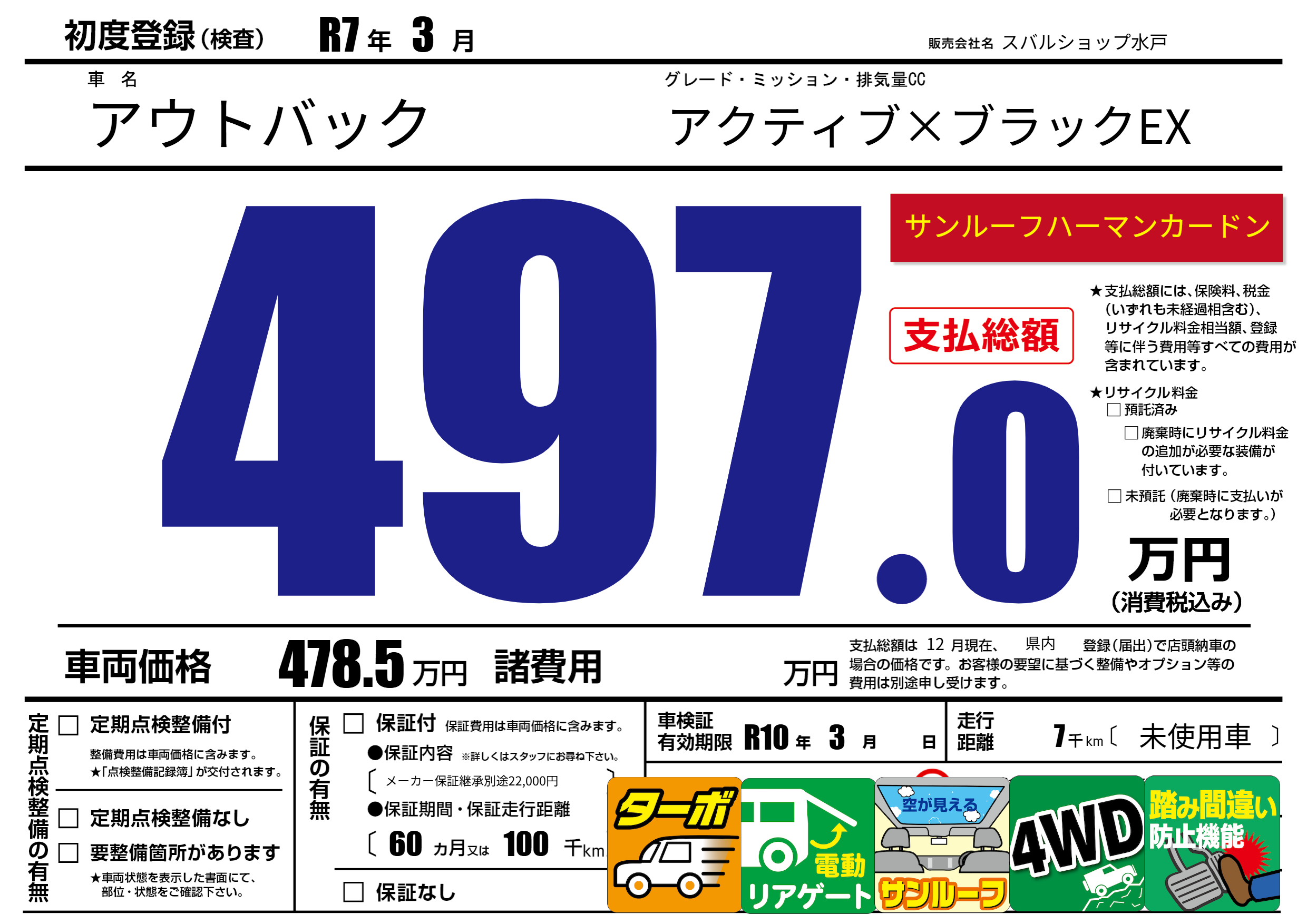 | 車名 | アウトバック | グレード ミッション 排気量 |