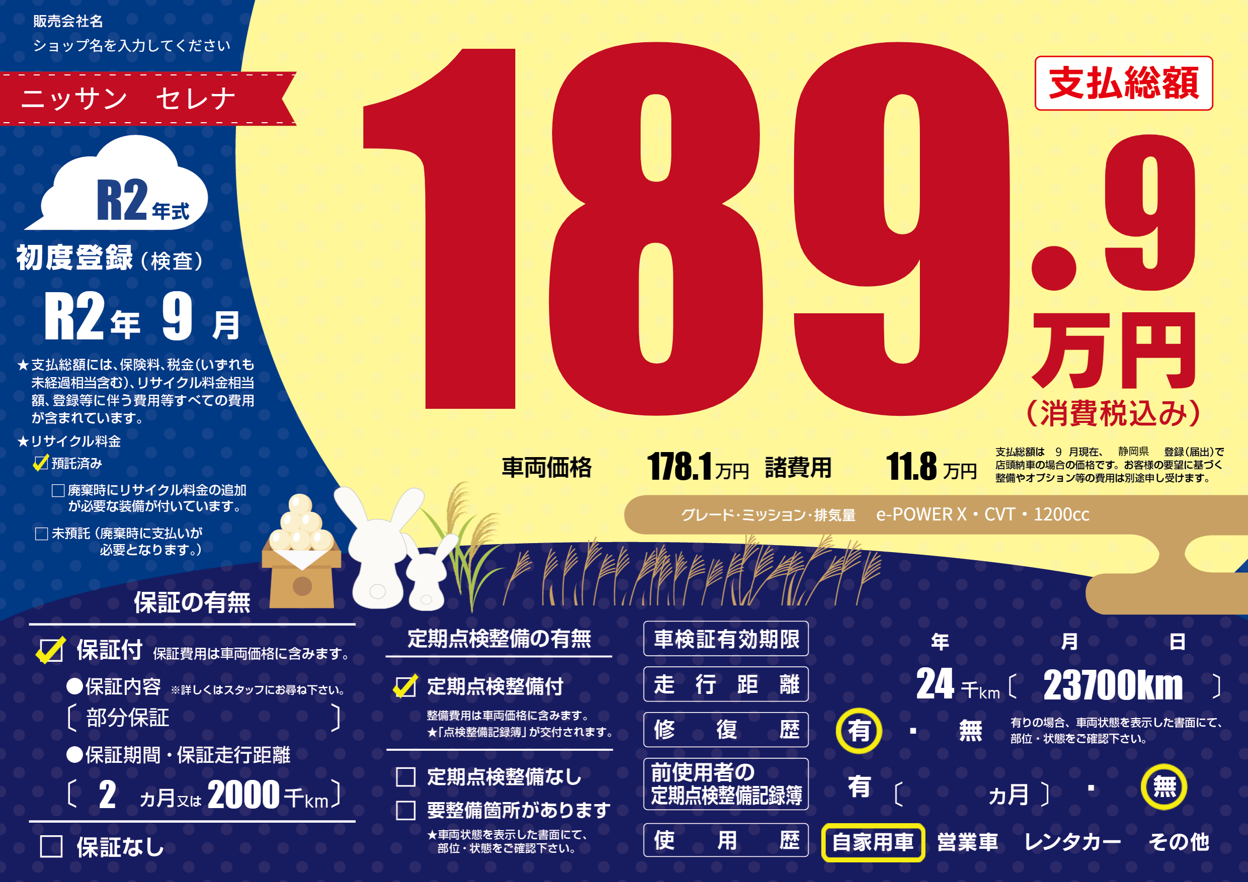 | 走行キロ | 2.4万km | 初年度登録 | R2年9月 |