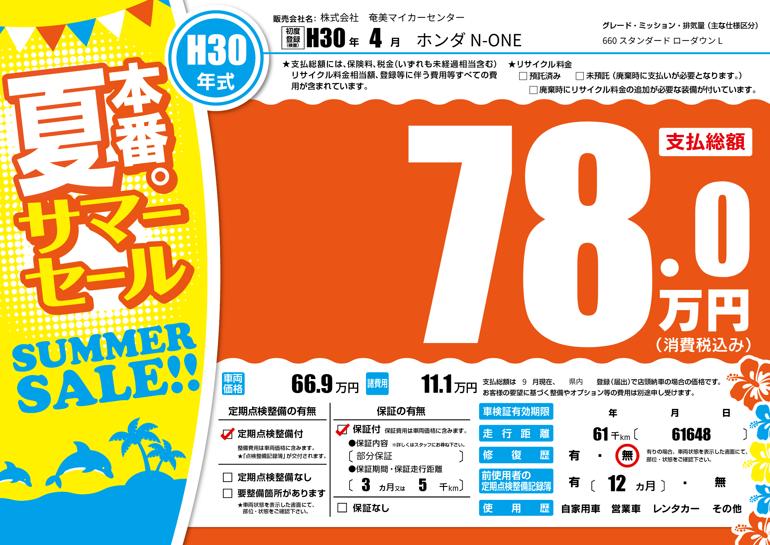 | 車名 | ホンダ N-ONE | グレード ミッション 排気量 |