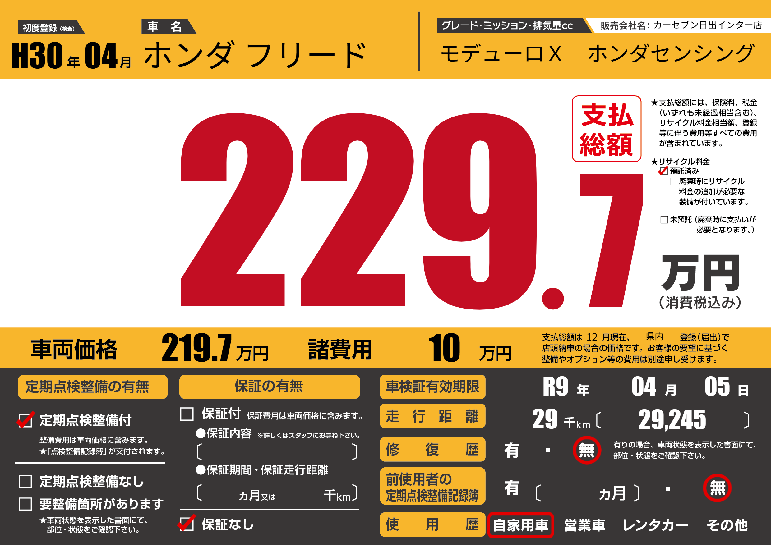 | 走行キロ | 2.9万km | 初年度登録 | H30年04月 |