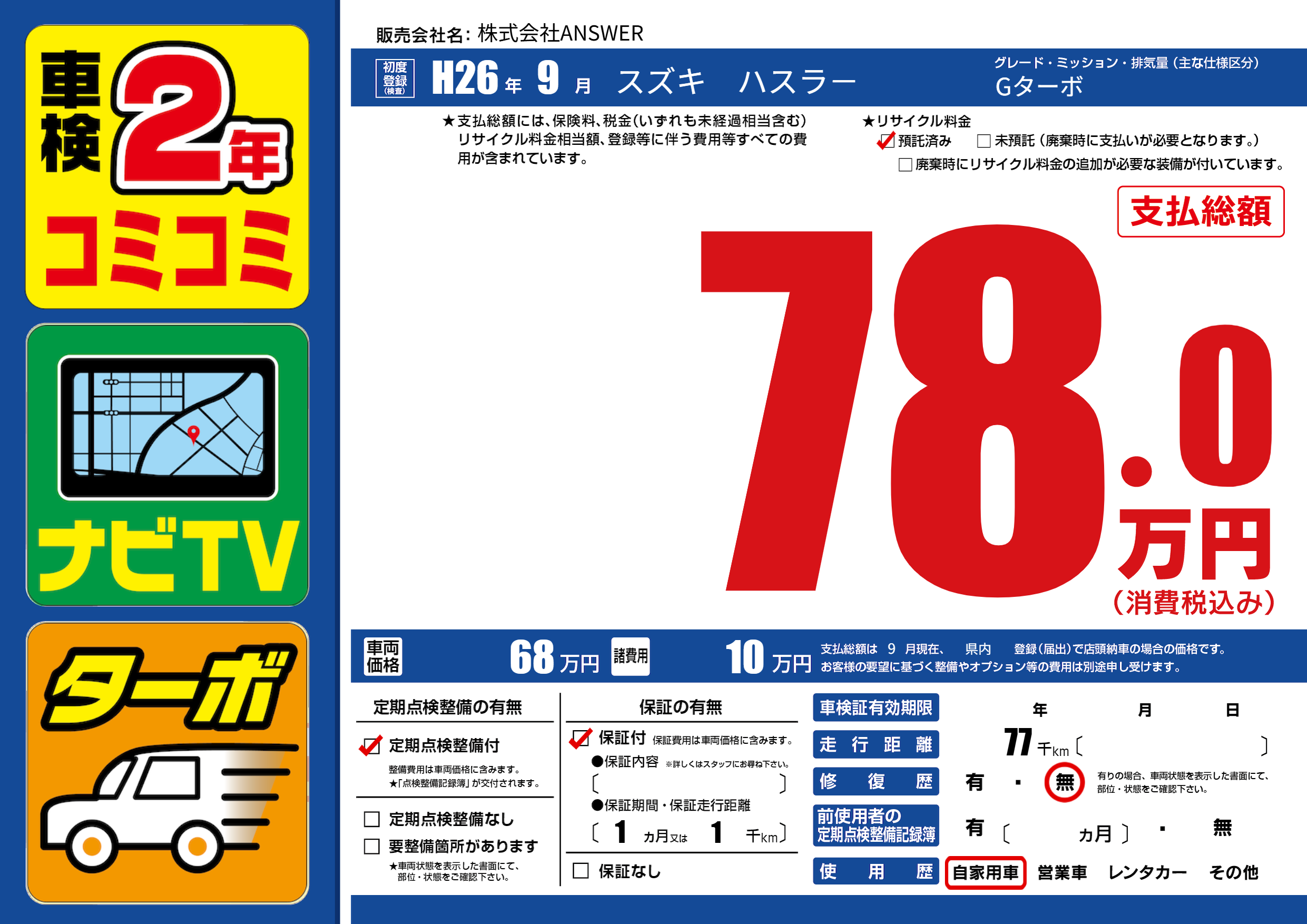 | 走行キロ | 7.7万km | ||