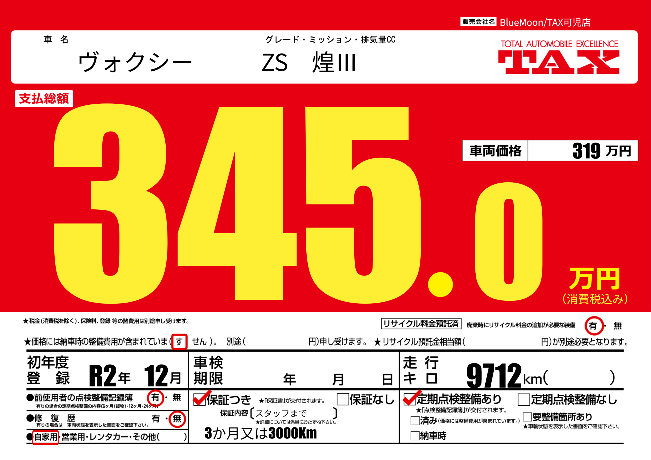 保証付き 保証内容(スタッフまで) ---ヶ月または()千kmまで |