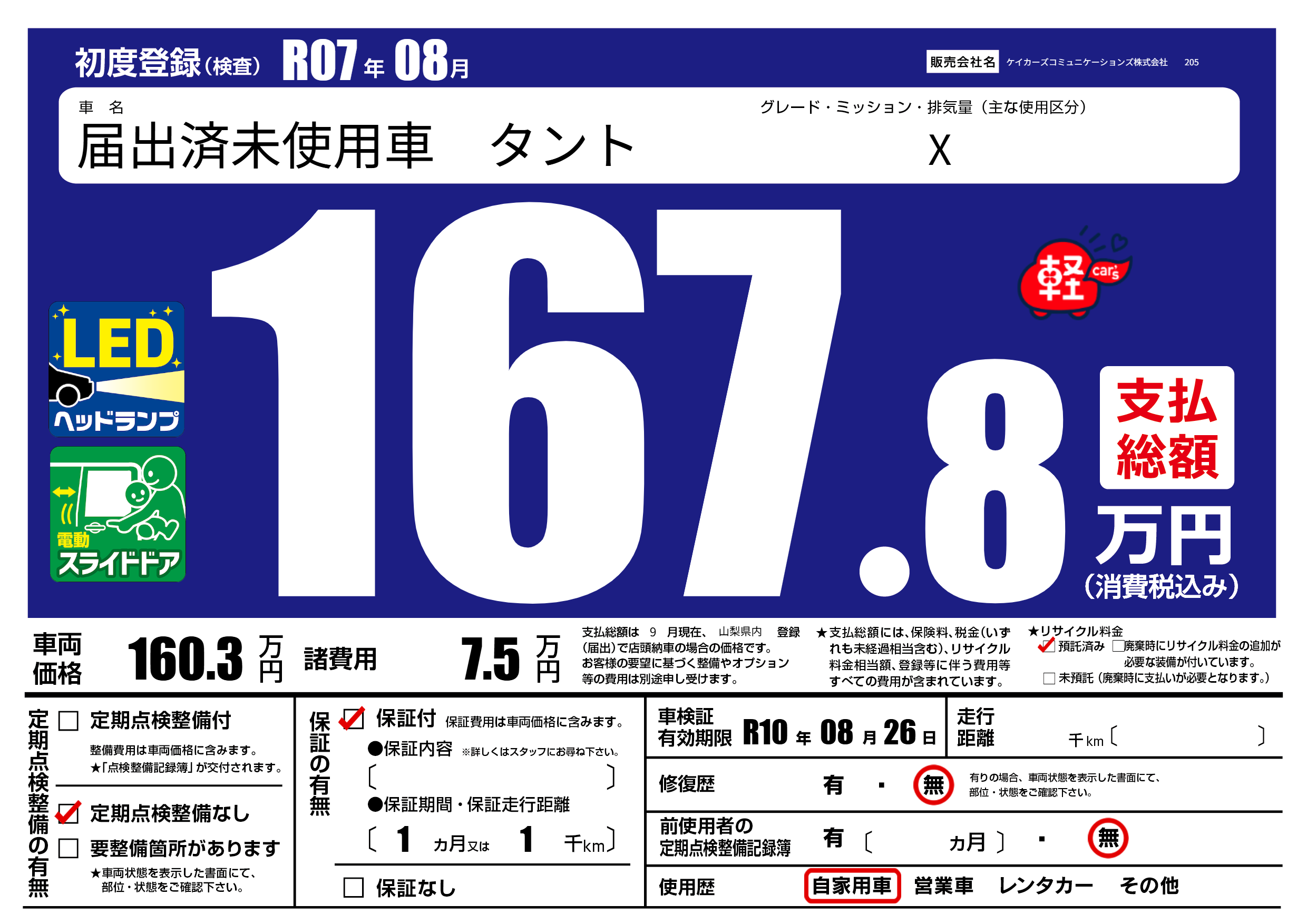 | 初年度登録 | R07年08月 | ||