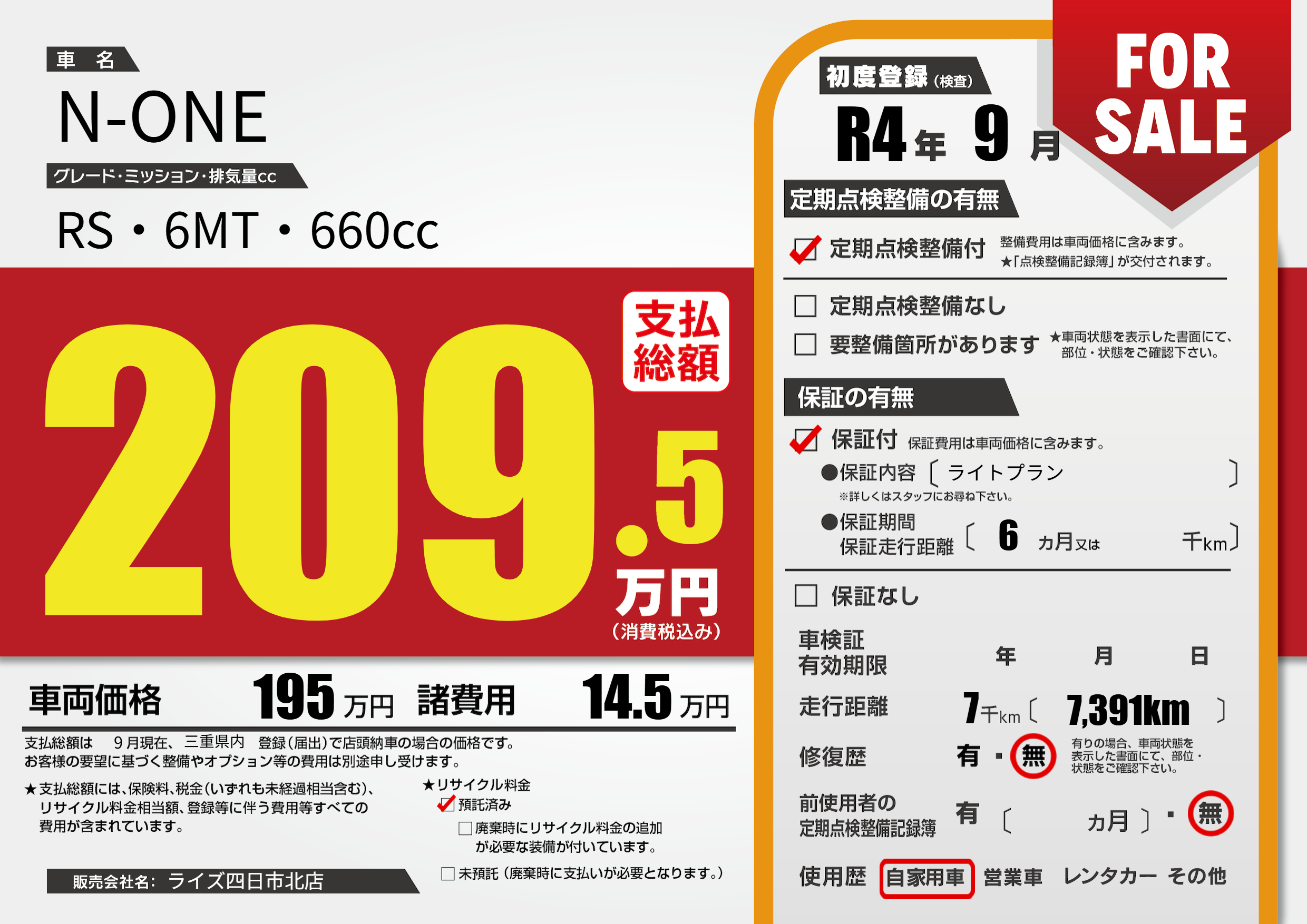 | 初年度登録 | R4年9月 | ||
