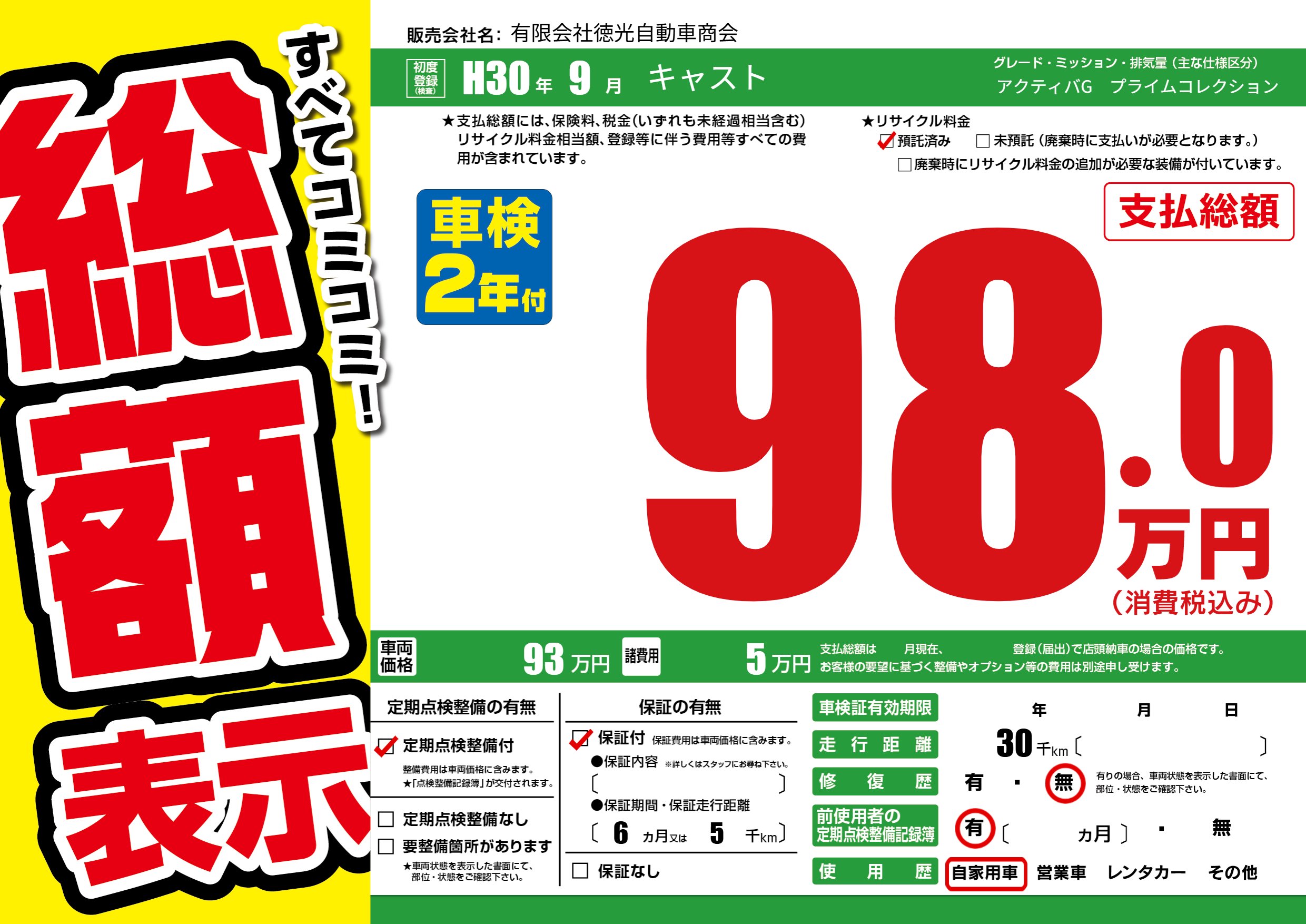 | 走行キロ | 3万km | 初年度登録 | H30年9月 |