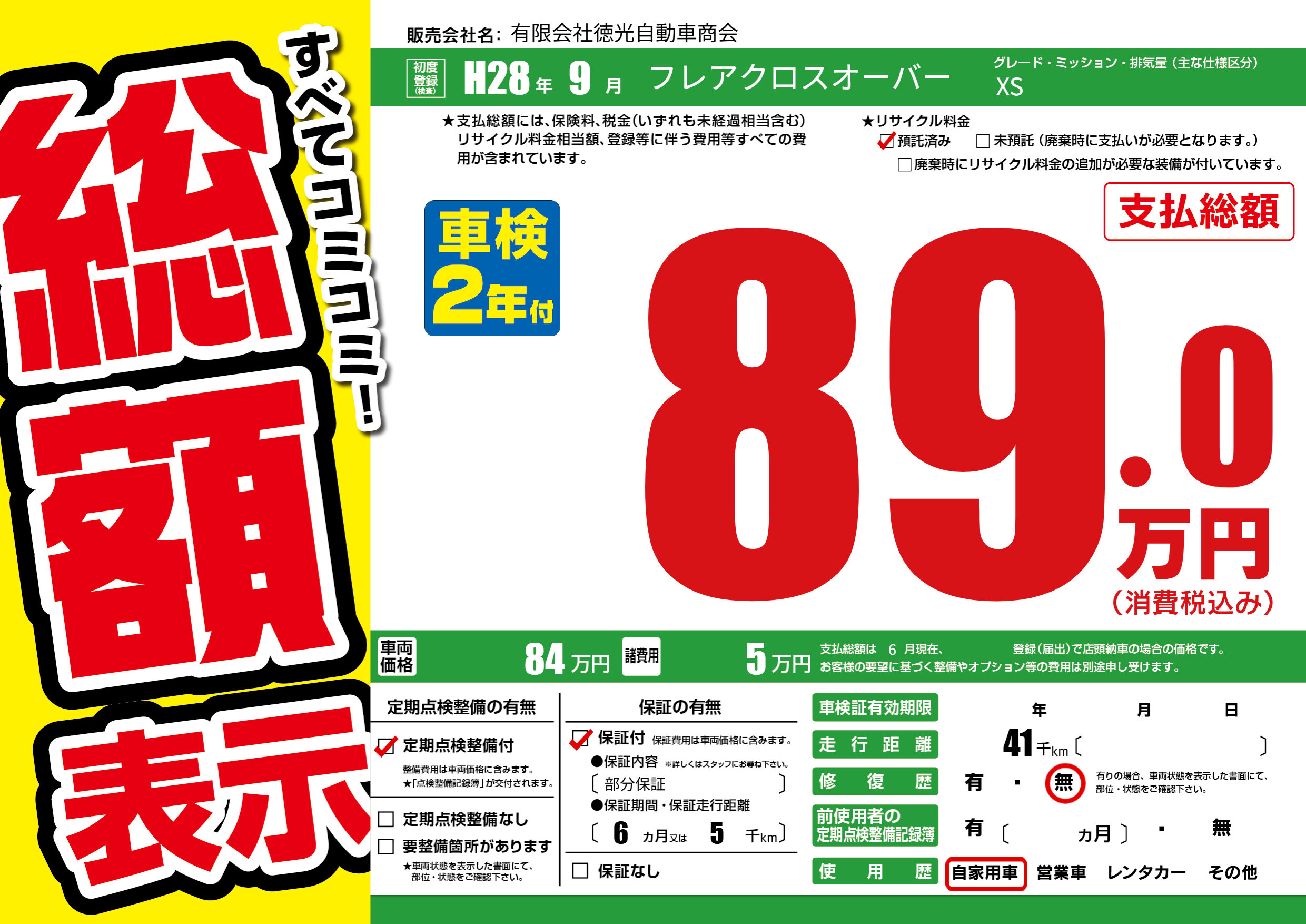 | 走行キロ | 4.1万km | 初年度登録 | H28年9月 |