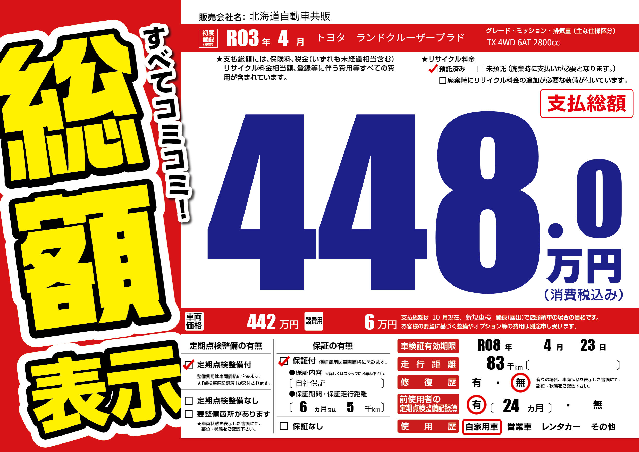 | 車名 | トヨタ ランドクルーザープラド | グレード ミッション 排気量 |
