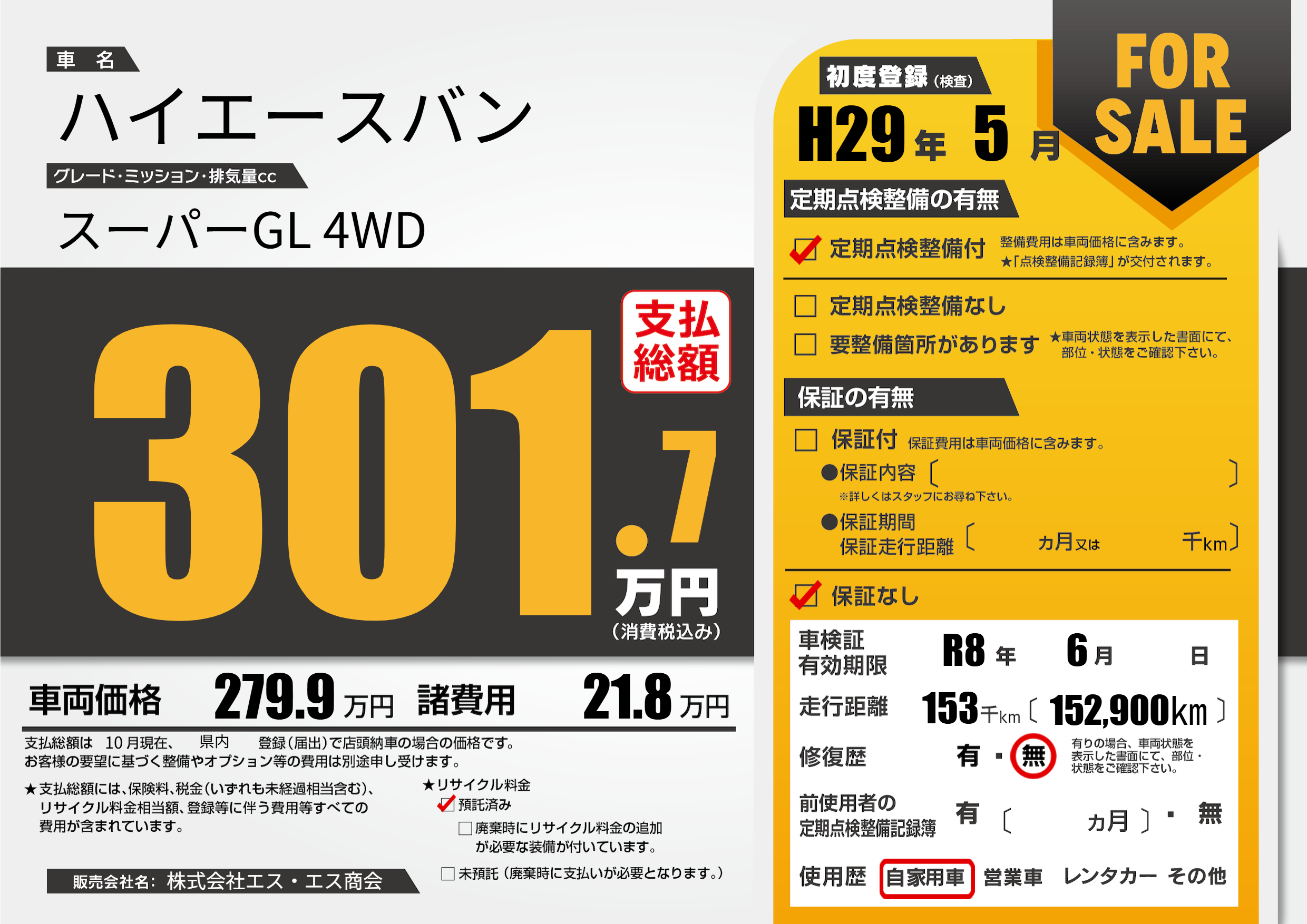 なし | 車検制限 | R8年6月---月 |