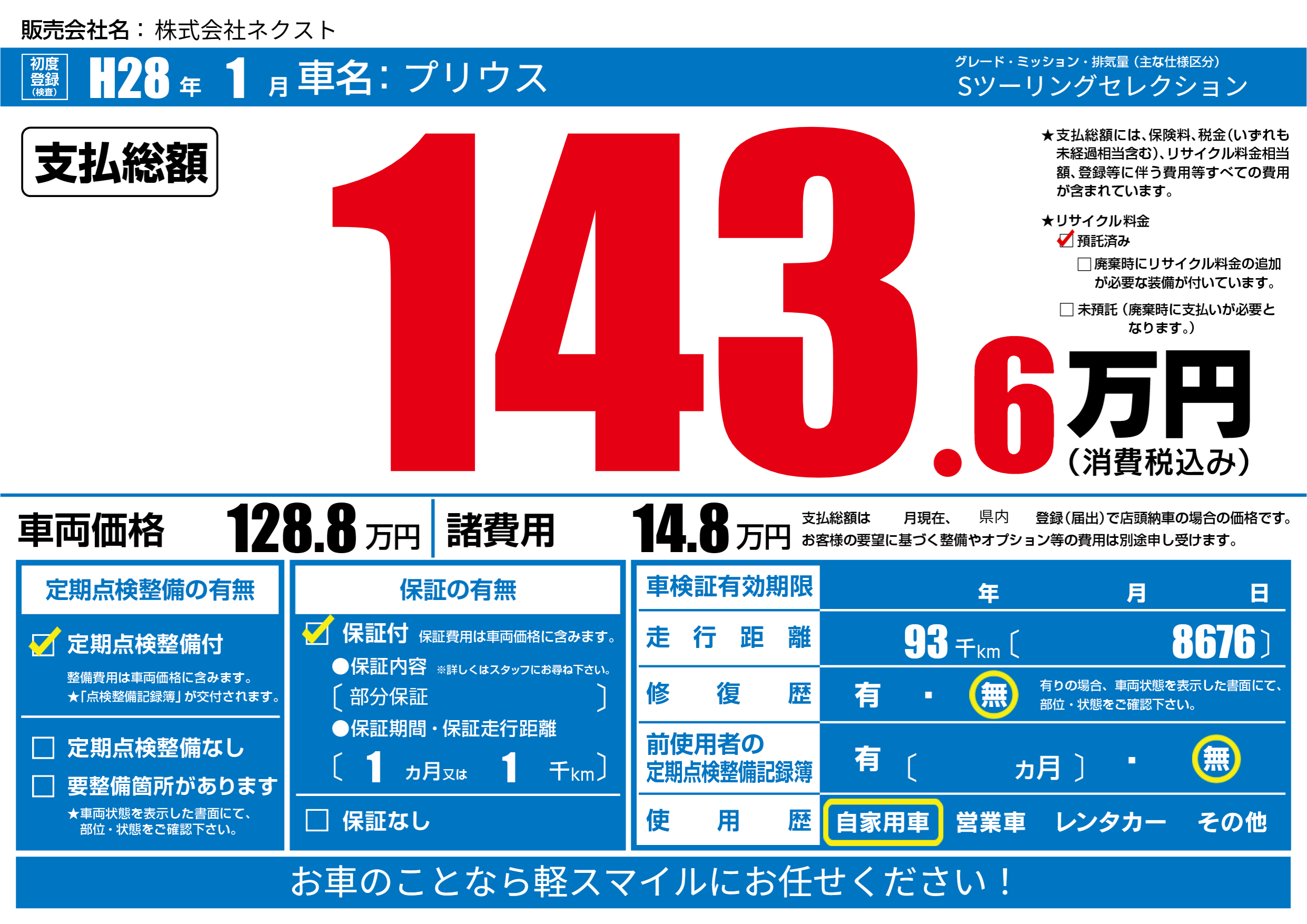 保証付き 保証内容(部分保証) 1ヶ月または(1)千kmまで |