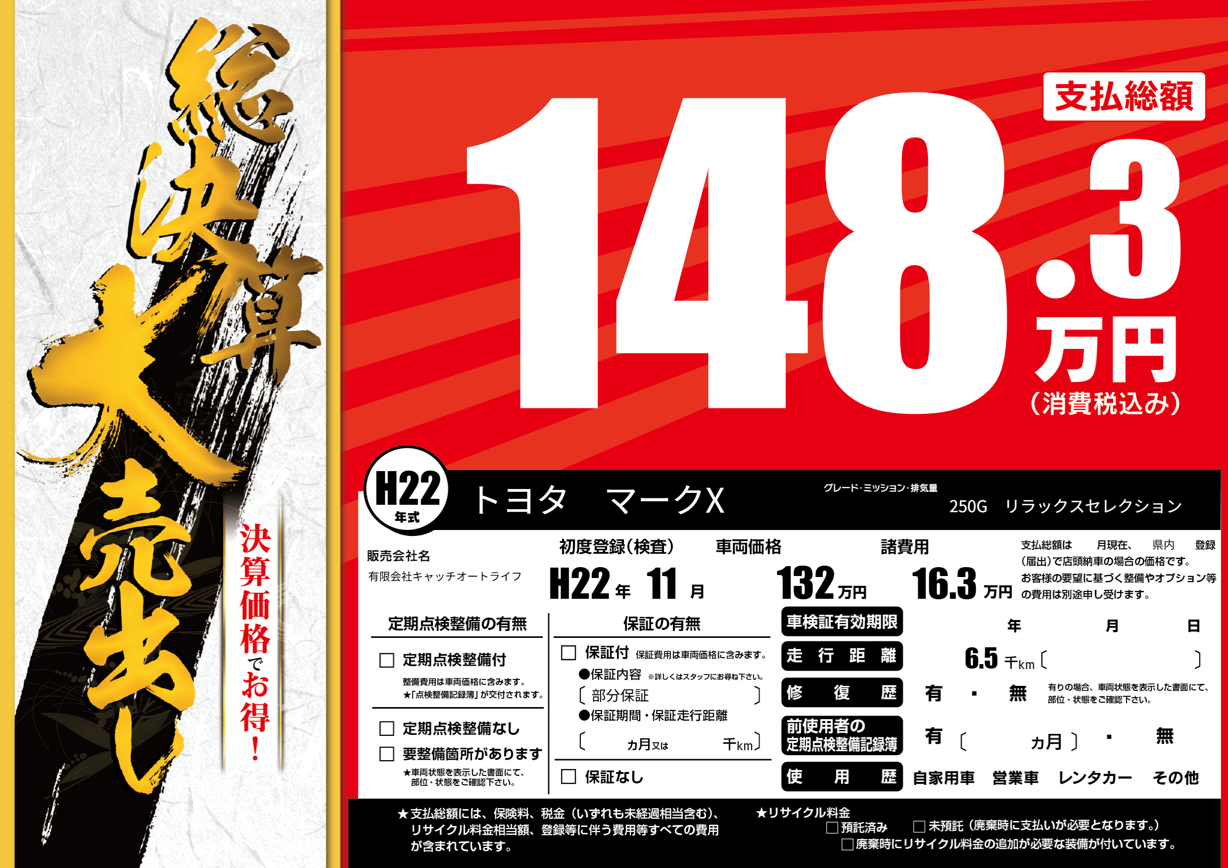| 車名 | トヨタ マークX | グレード ミッション 排気量 |