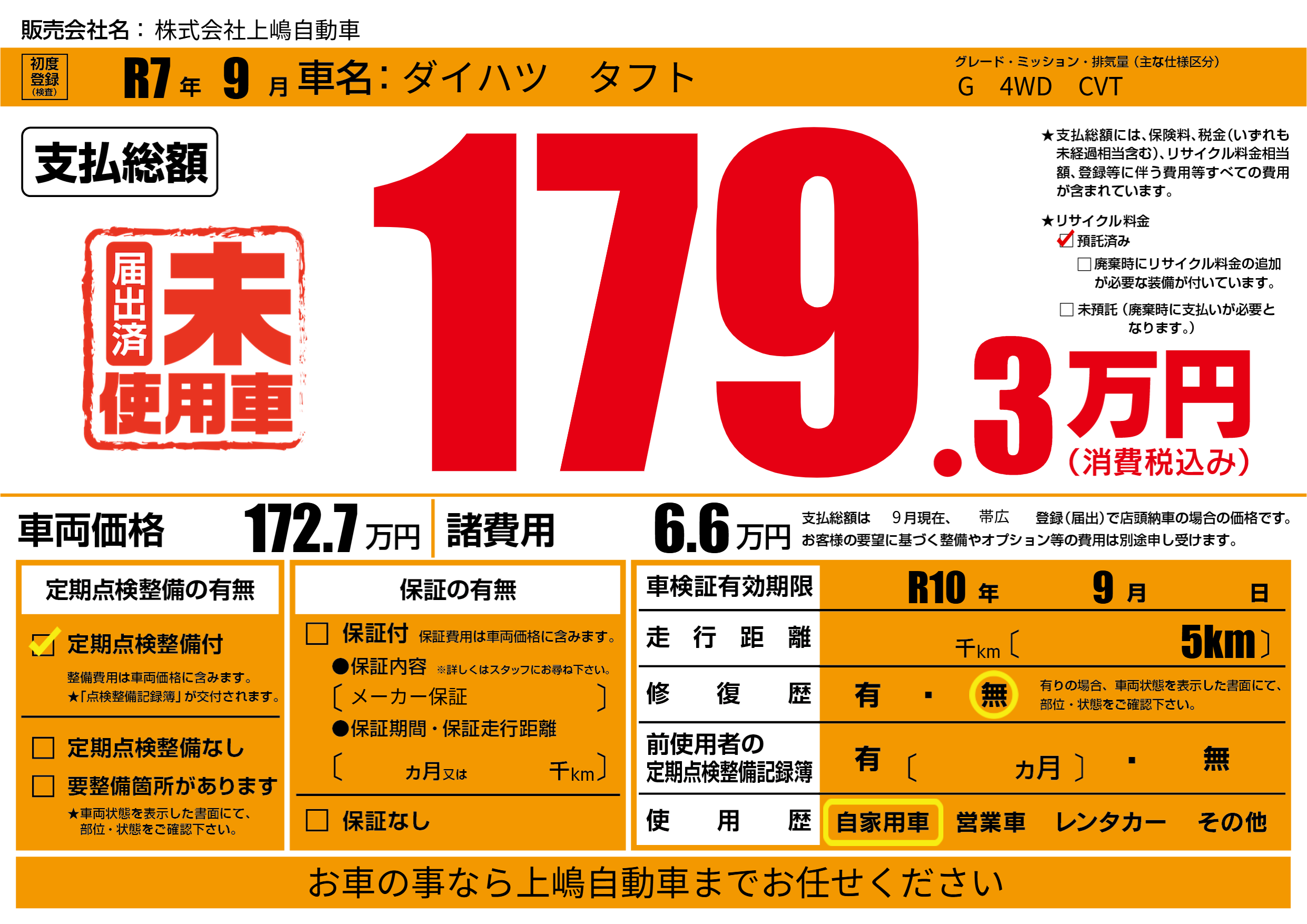 なし | 車検制限 | R10年9月---月 |