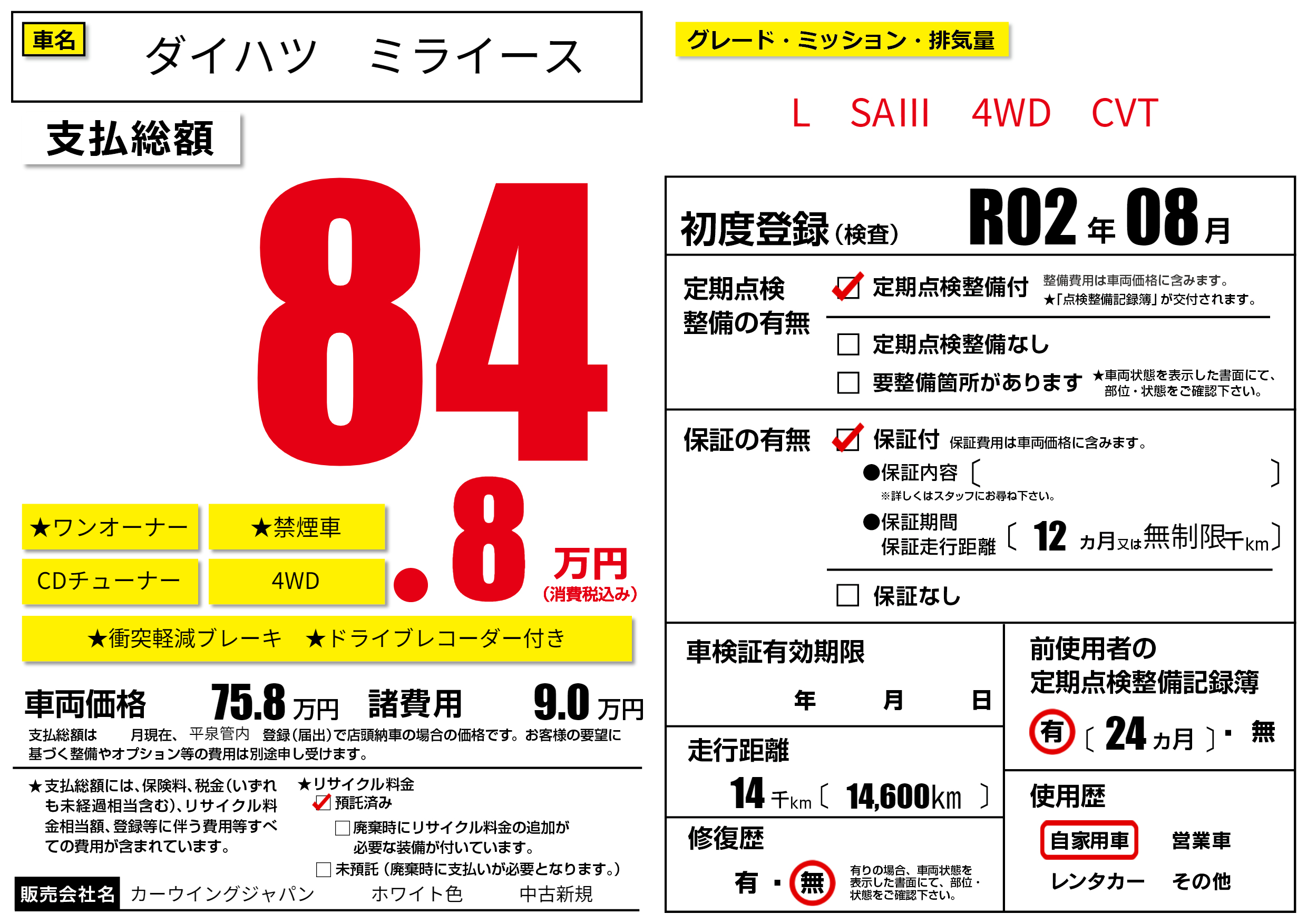 | 定期点検整備 | 定期点検整備あり | ||