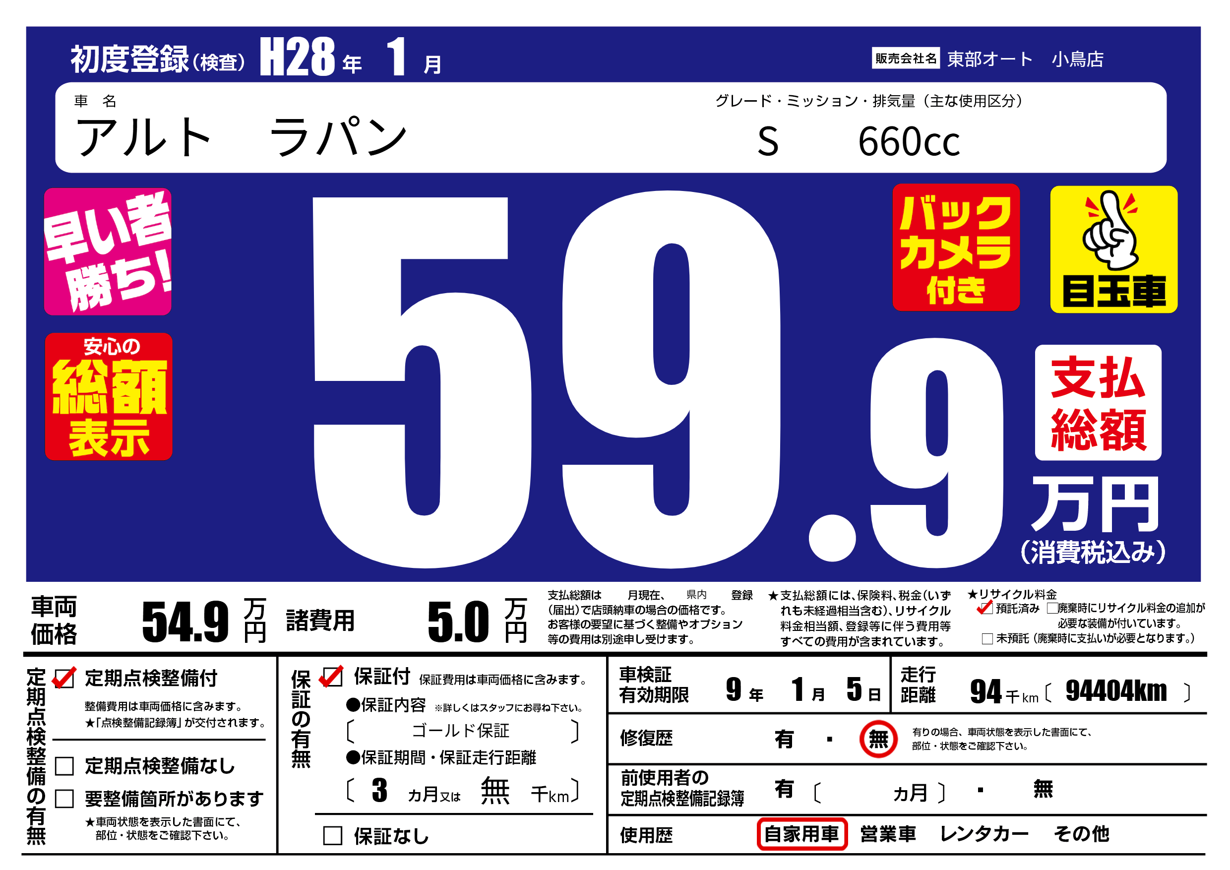 保証付き 保証内容( ゴールド保証) 3ヶ月または(無)千kmまで |