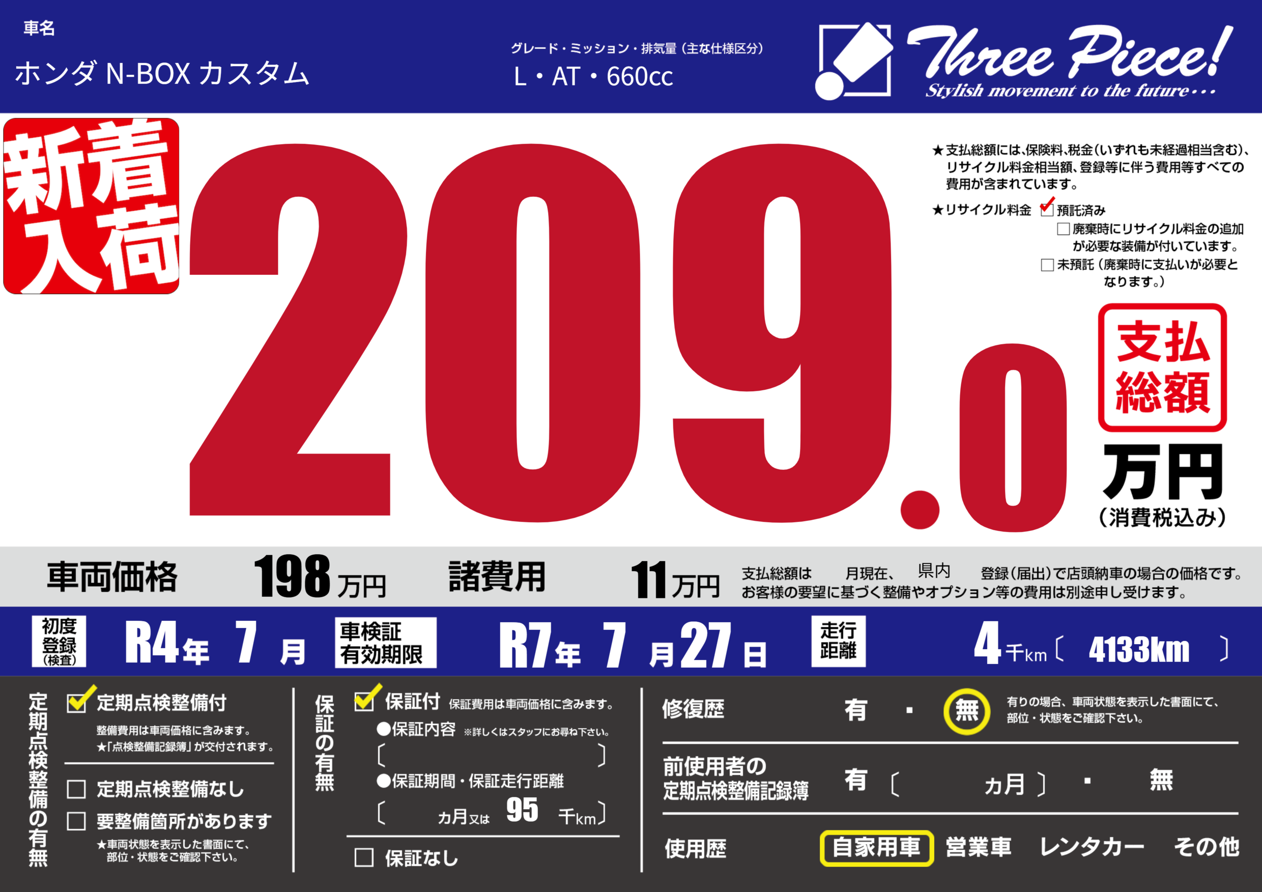 なし | 車検制限 | R7年7月27月 |