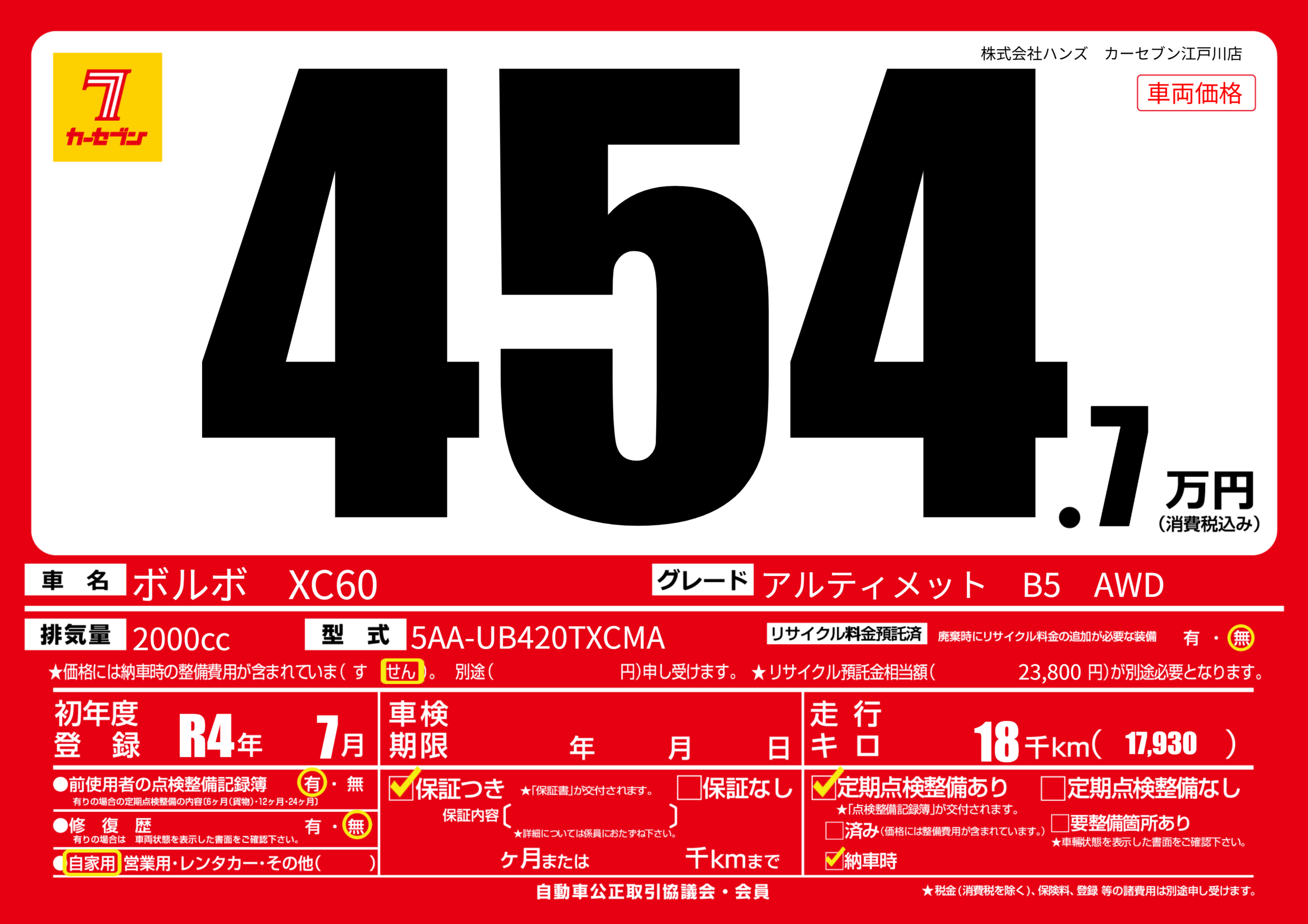 | 初年度登録 | R4年7月 | ||