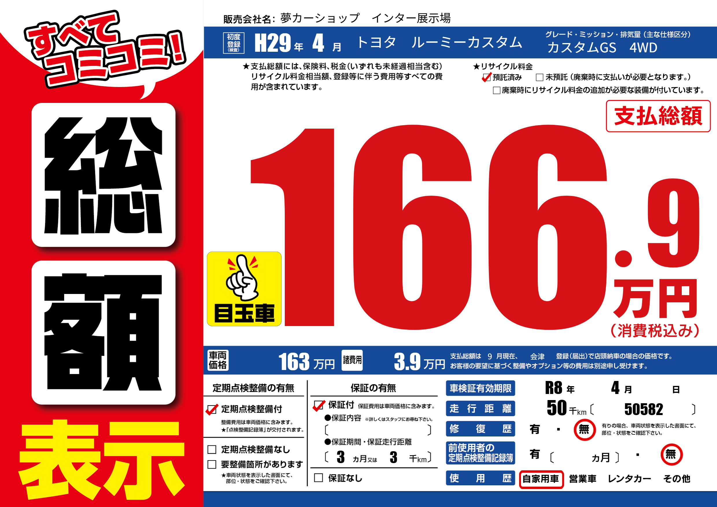 保証付き 保証内容(---) 3ヶ月または(3)千kmまで |