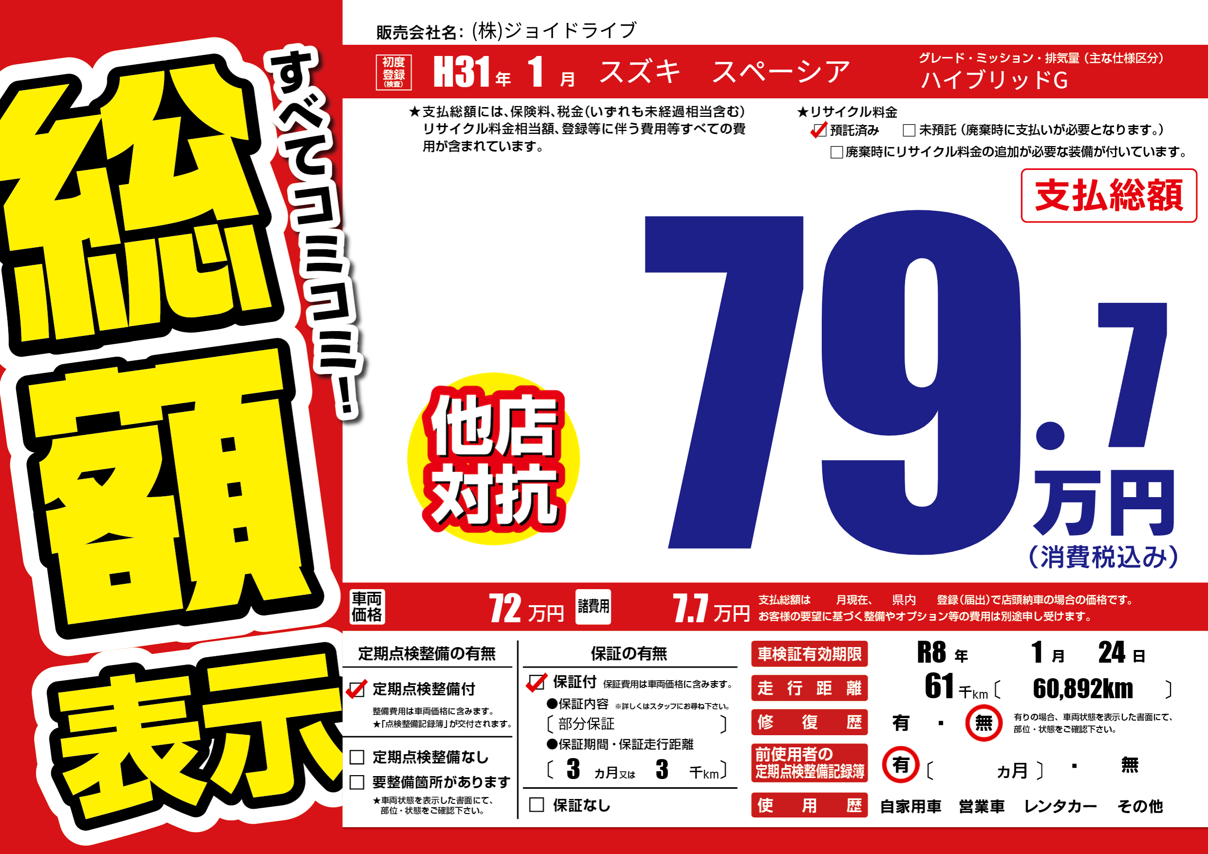 なし | 車検制限 | R8年1月24月 |