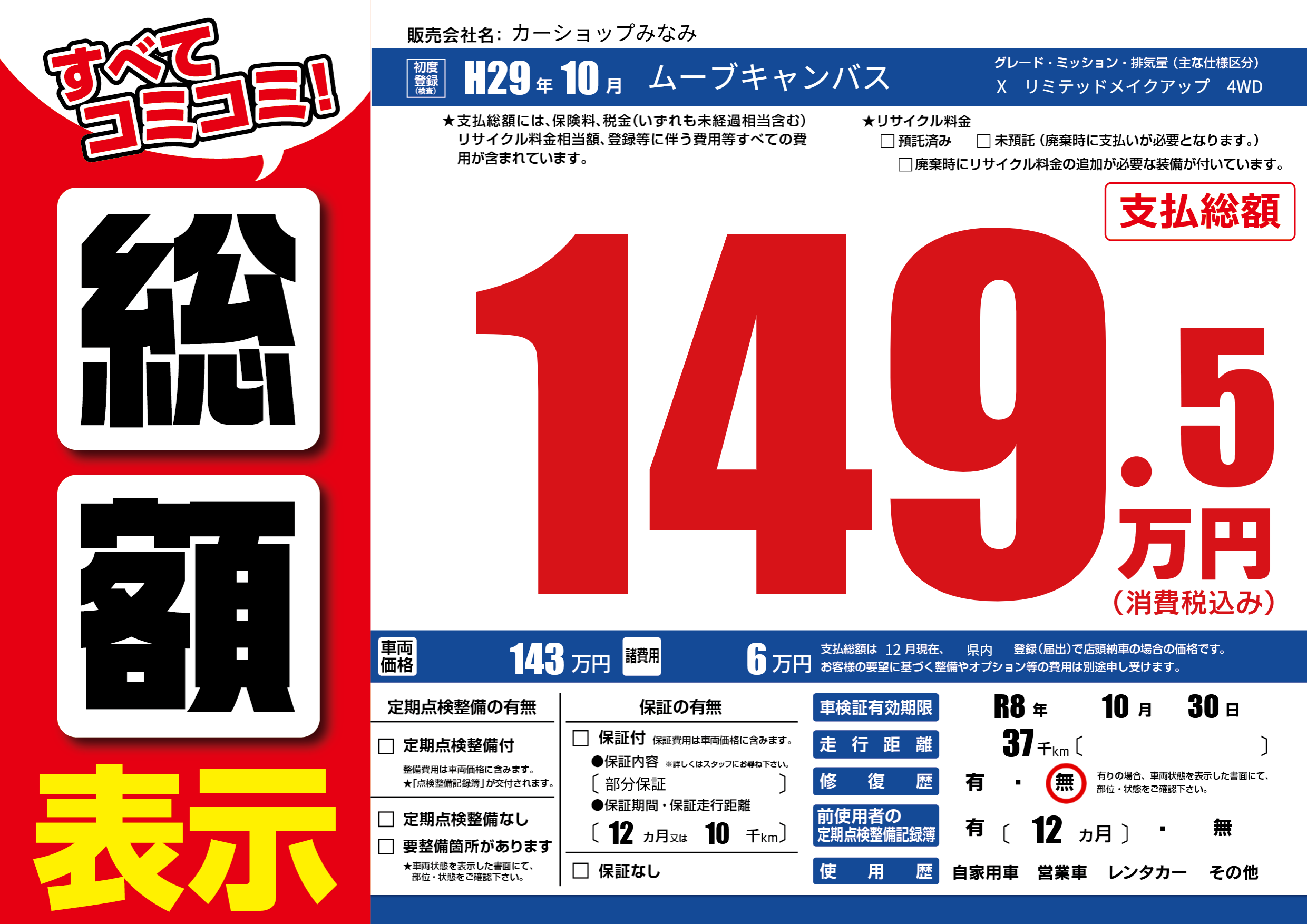 | 車名 | ムーブキャンバス | グレード ミッション 排気量 |