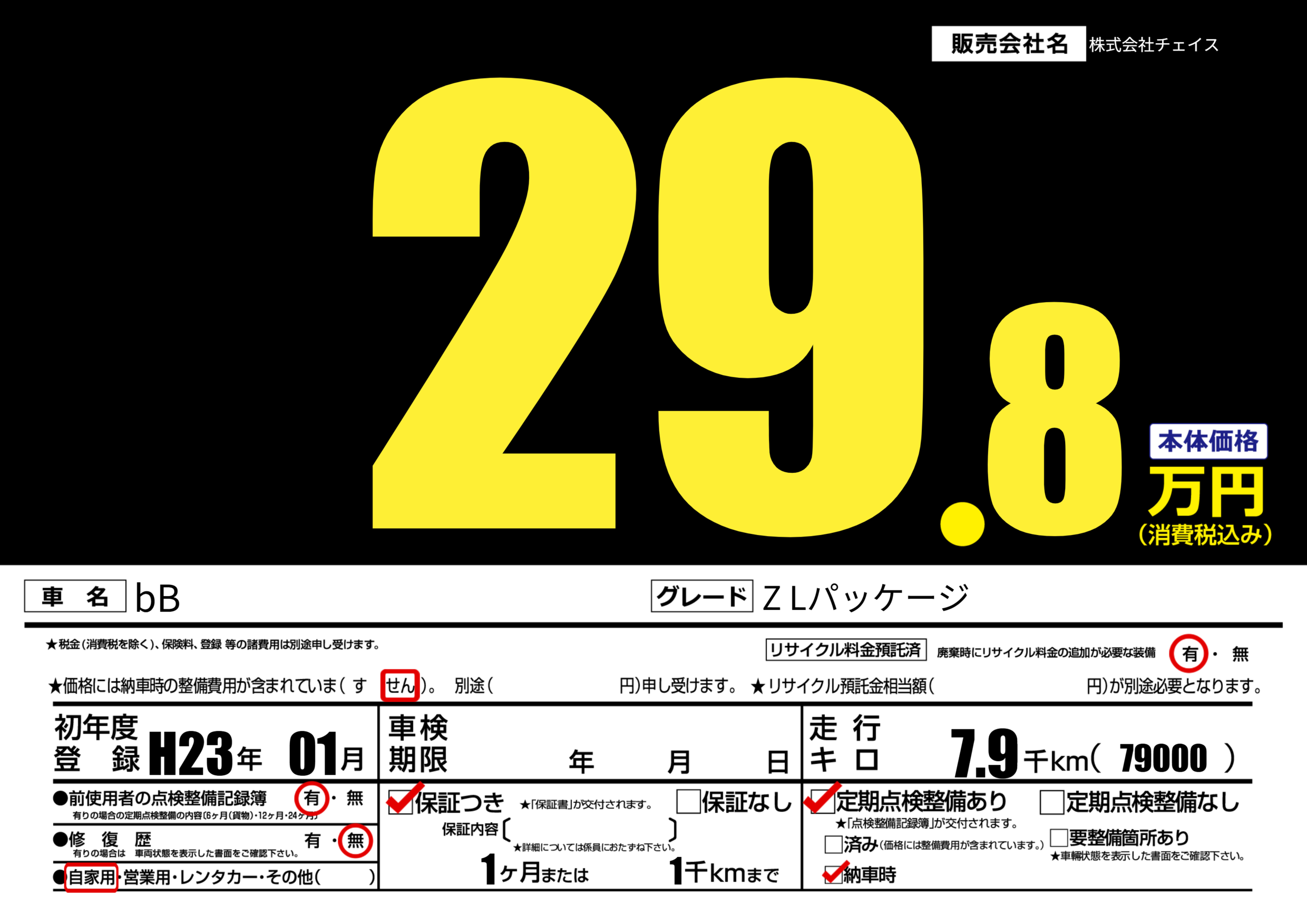 | 定期点検整備 | 定期点検整備あり 納車時あり | ||