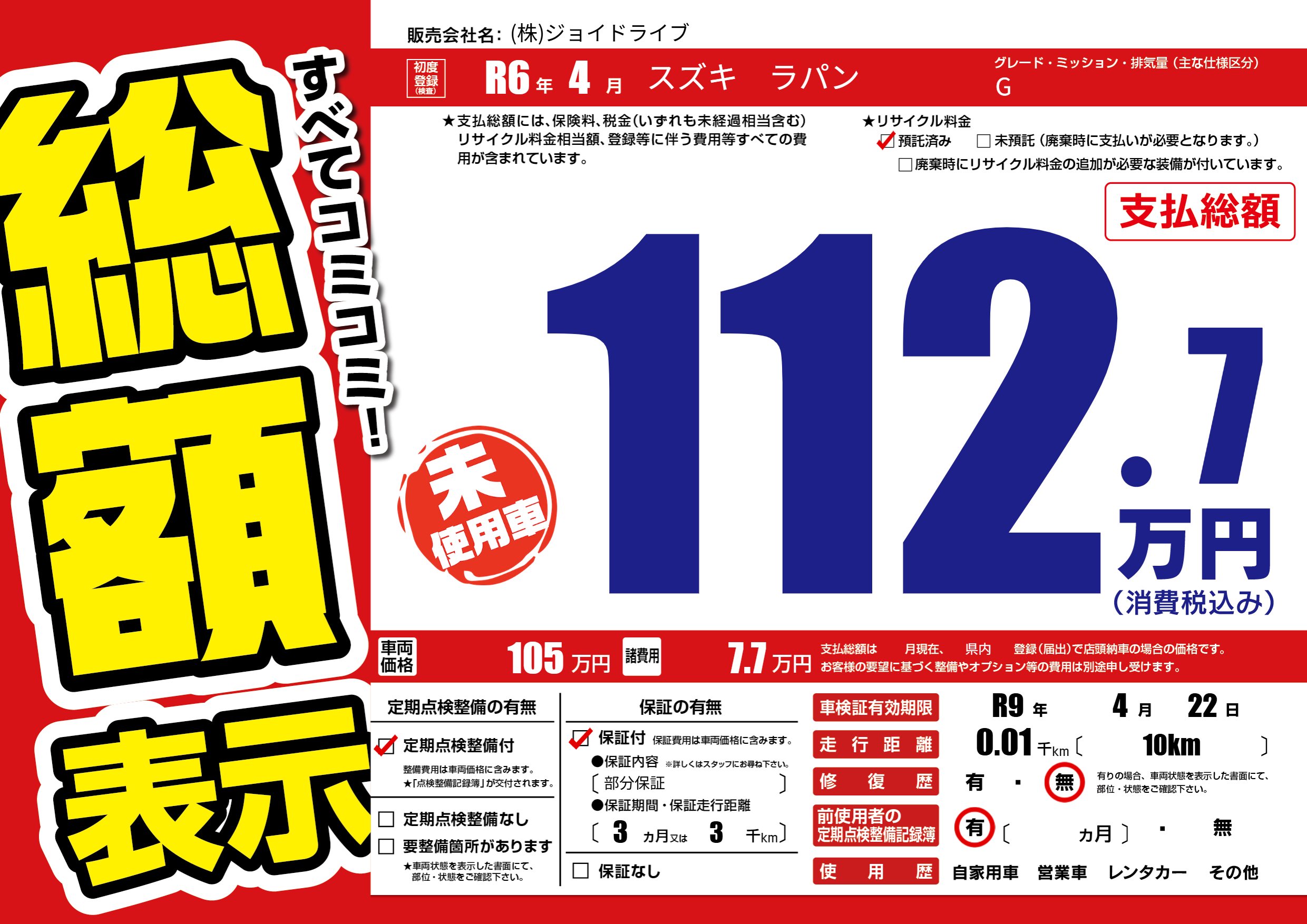 | 車名 | スズキ ラパン | グレード ミッション 排気量 |