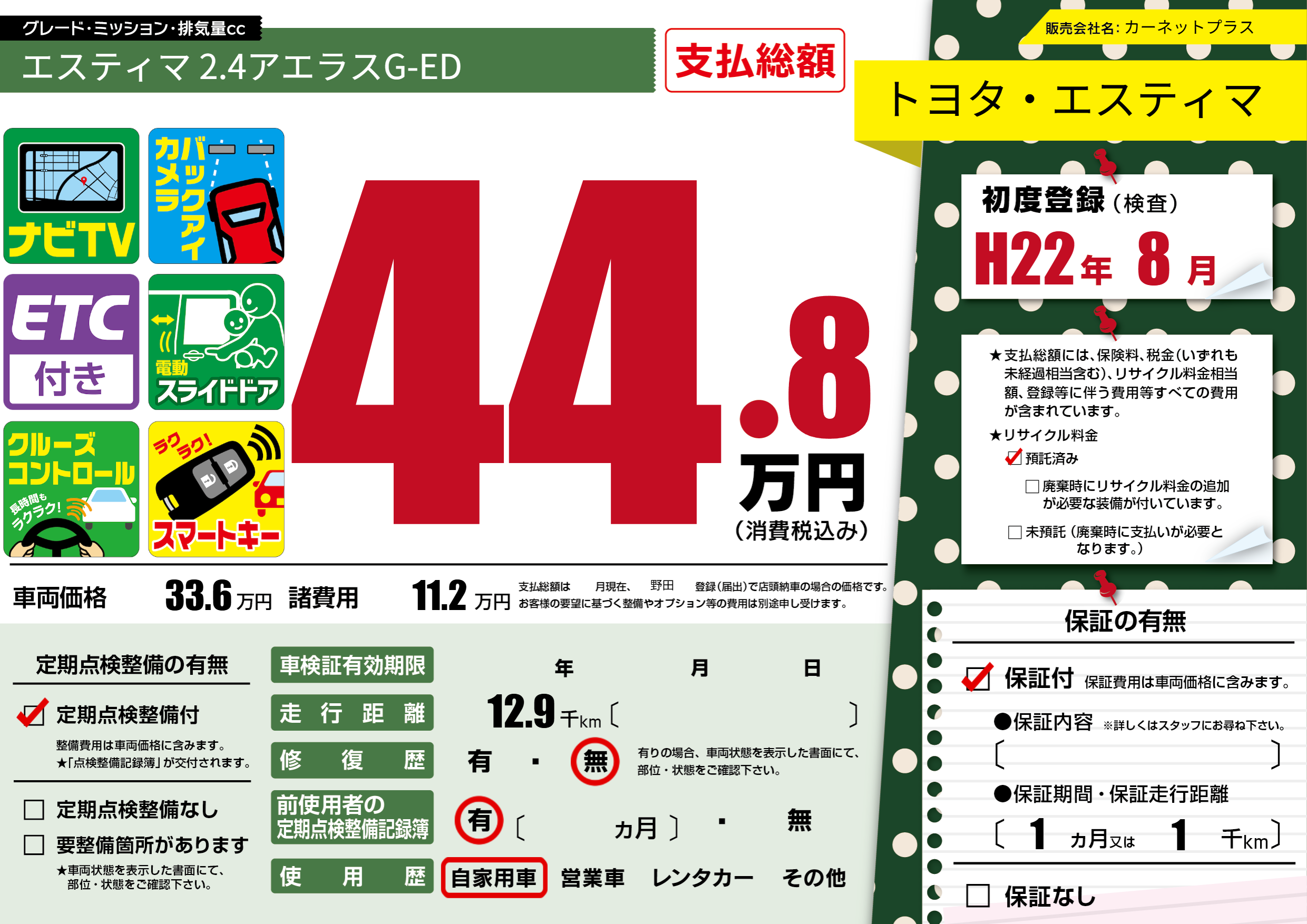 | 定期点検整備 | 定期点検整備あり | ||