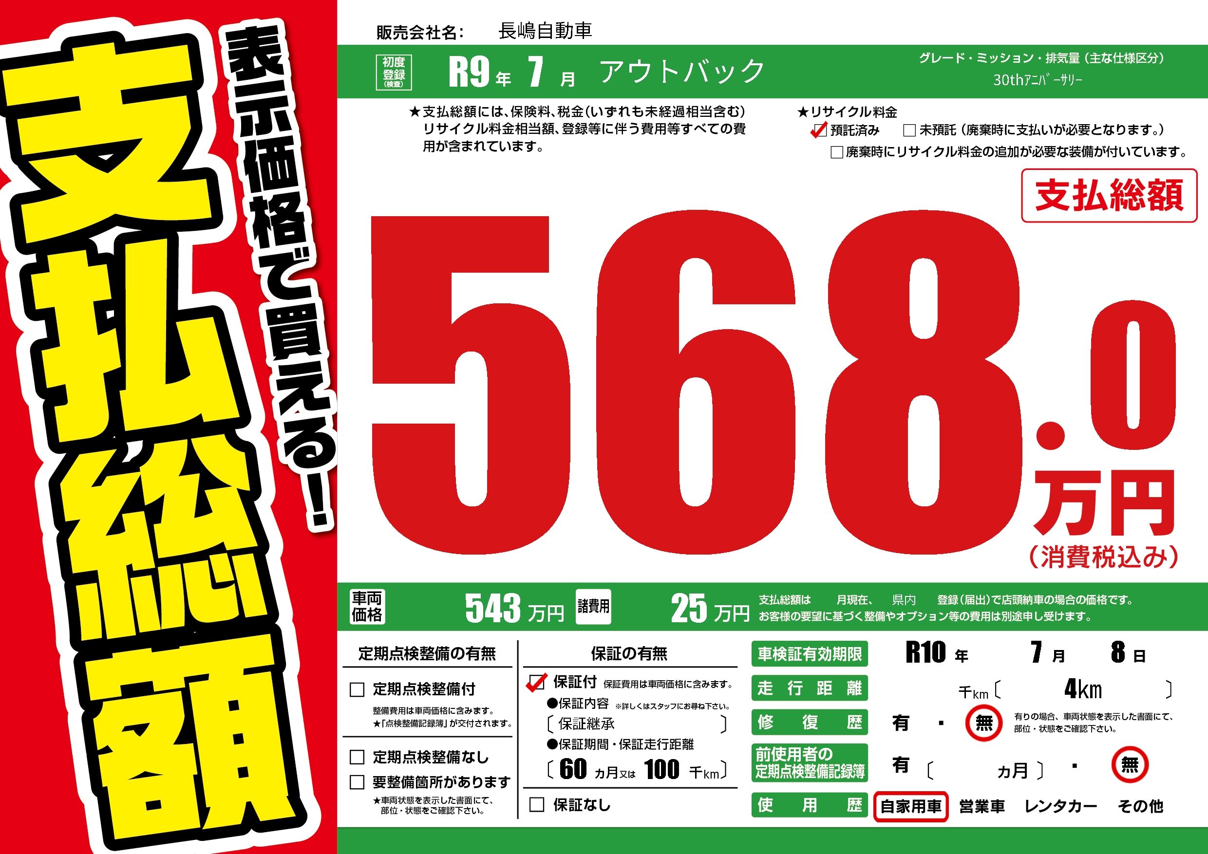 なし | 車検制限 | R10年7月8月 |