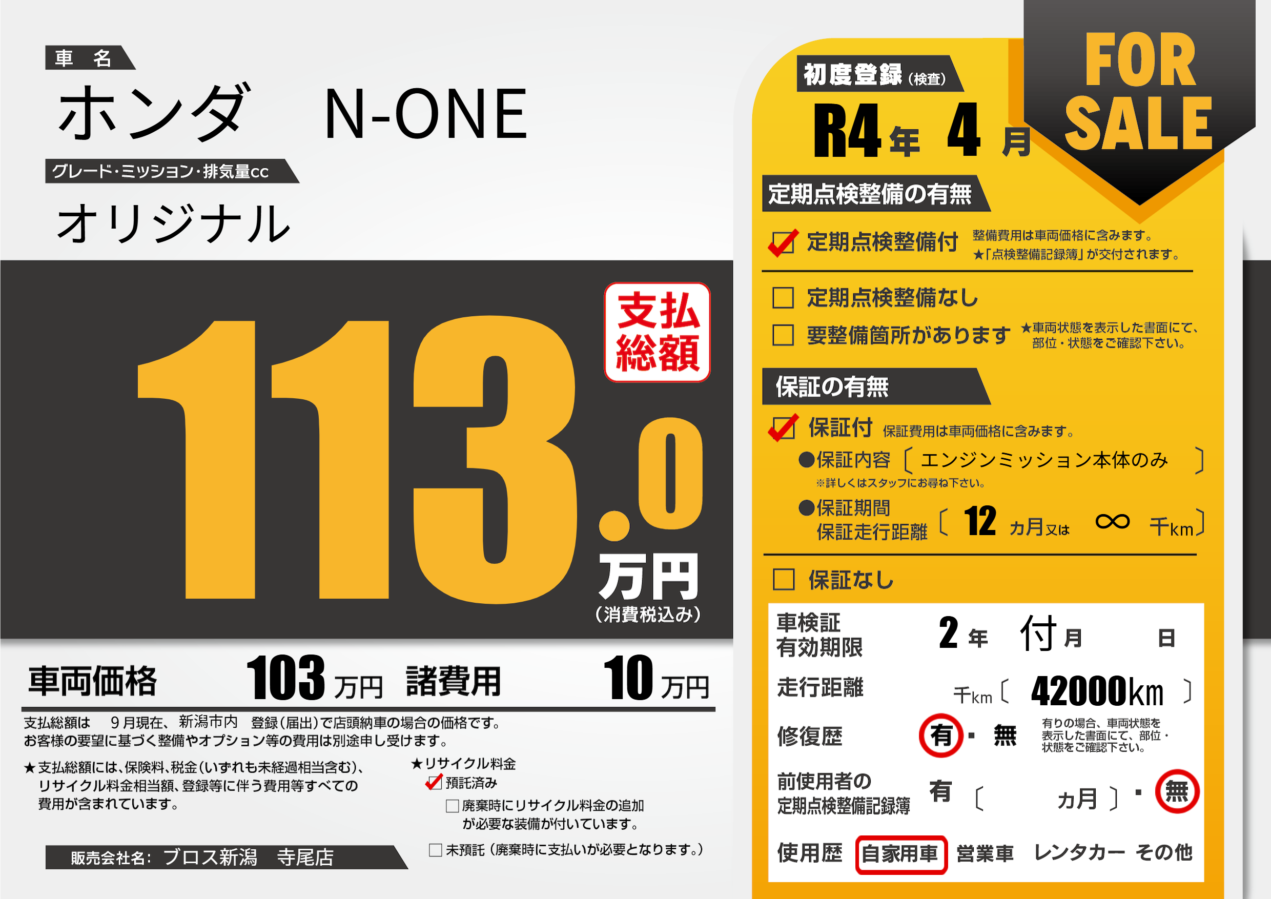 なし | 車検制限 | 2年付月---月 |