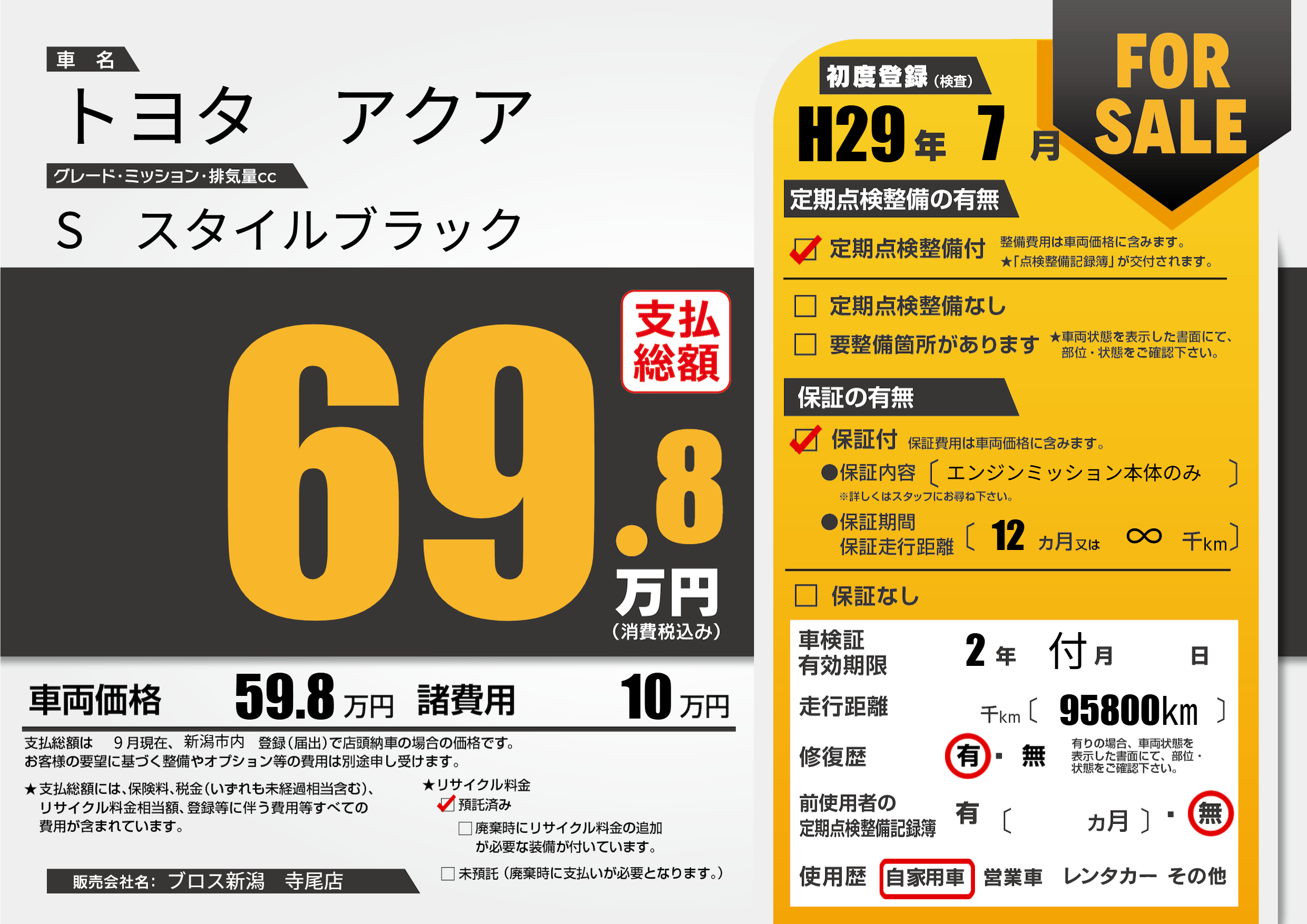 なし | 車検制限 | 2年付月---月 |