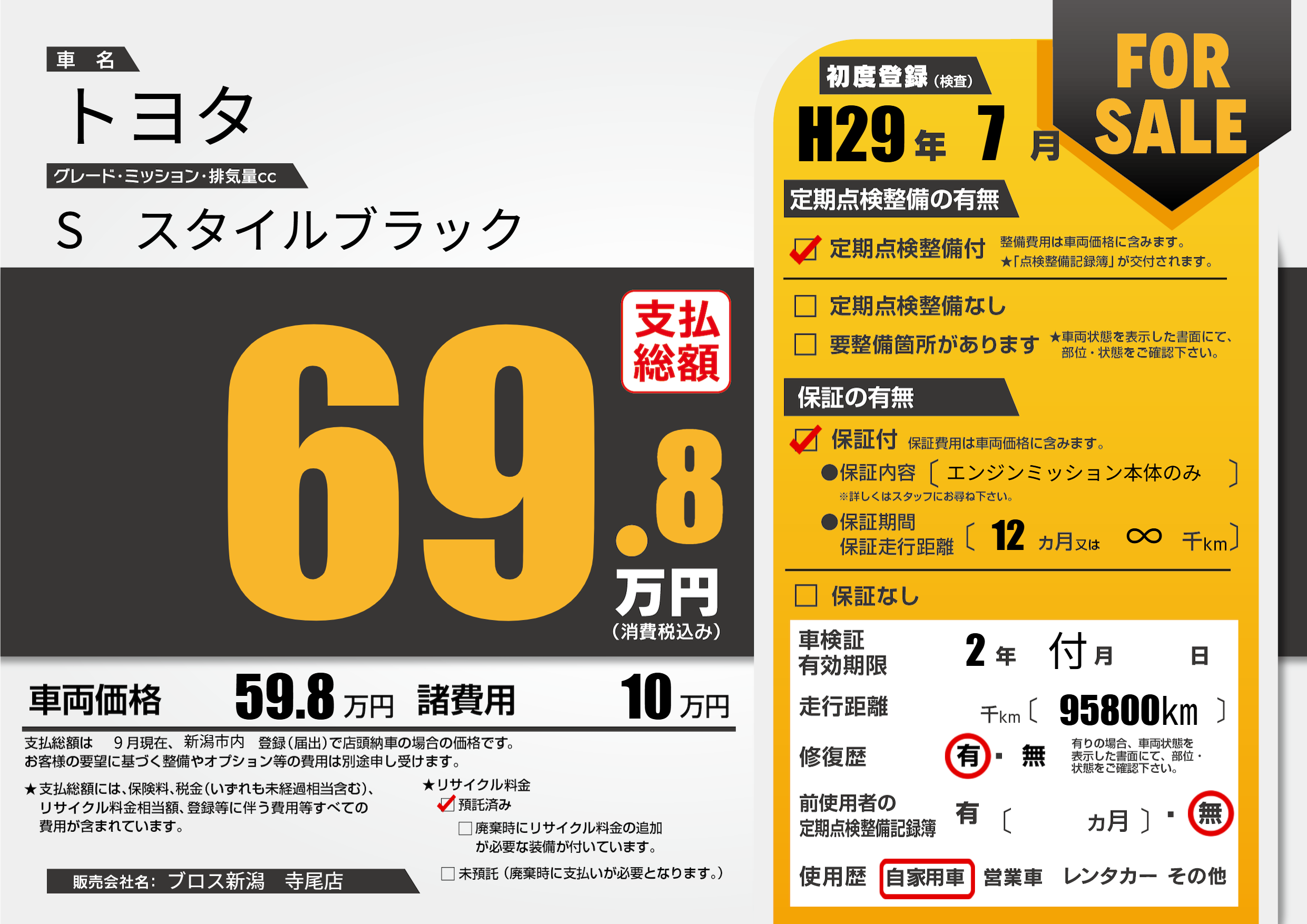 | 走行キロ | - | 初年度登録 | H29年7月 |