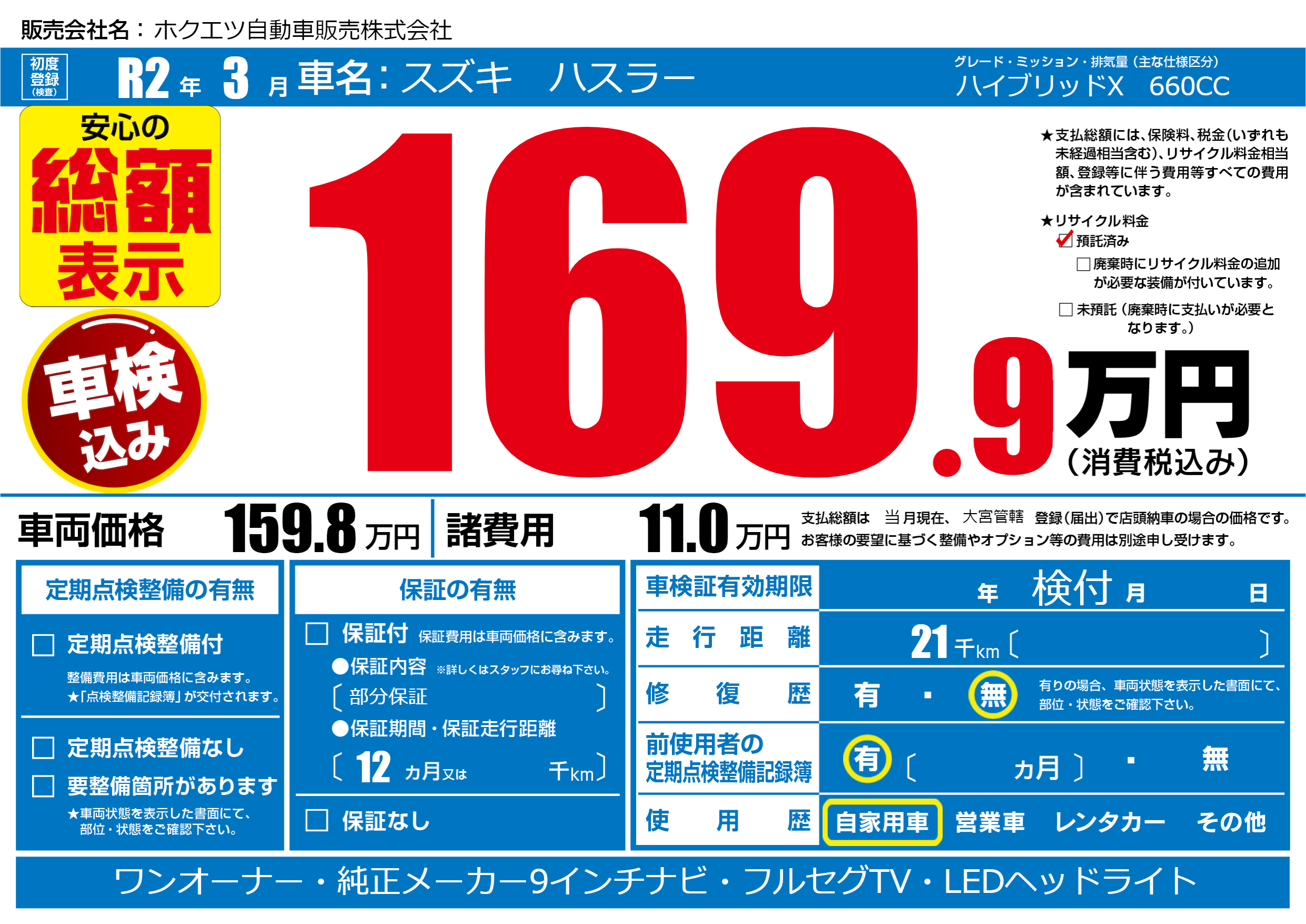 | 走行キロ | 2.1万km | ||