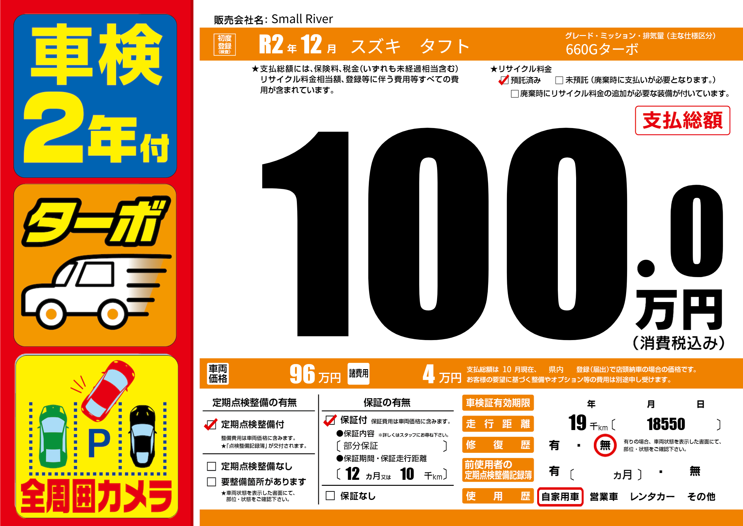 保証付き 保証内容(部分保証) 12ヶ月または(10)千kmまで |